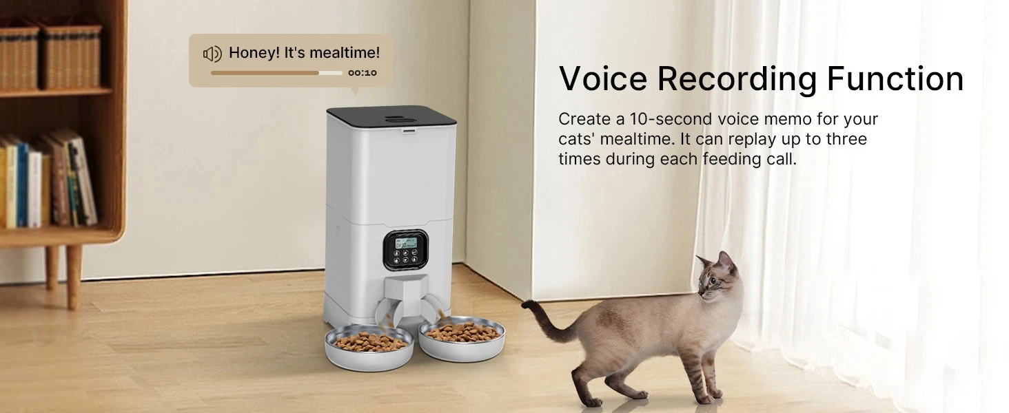 • Funciones inteligentes: la estación de alimentación para gatos tiene una función de grabación de mensajes de 10 segundos y una función de temporizador para ayudarlo a programar comidas regulares para sus amigos peludos;También tiene una función de memoria que evita que el horario de comida se pierda cuando la alimentación está apagada.