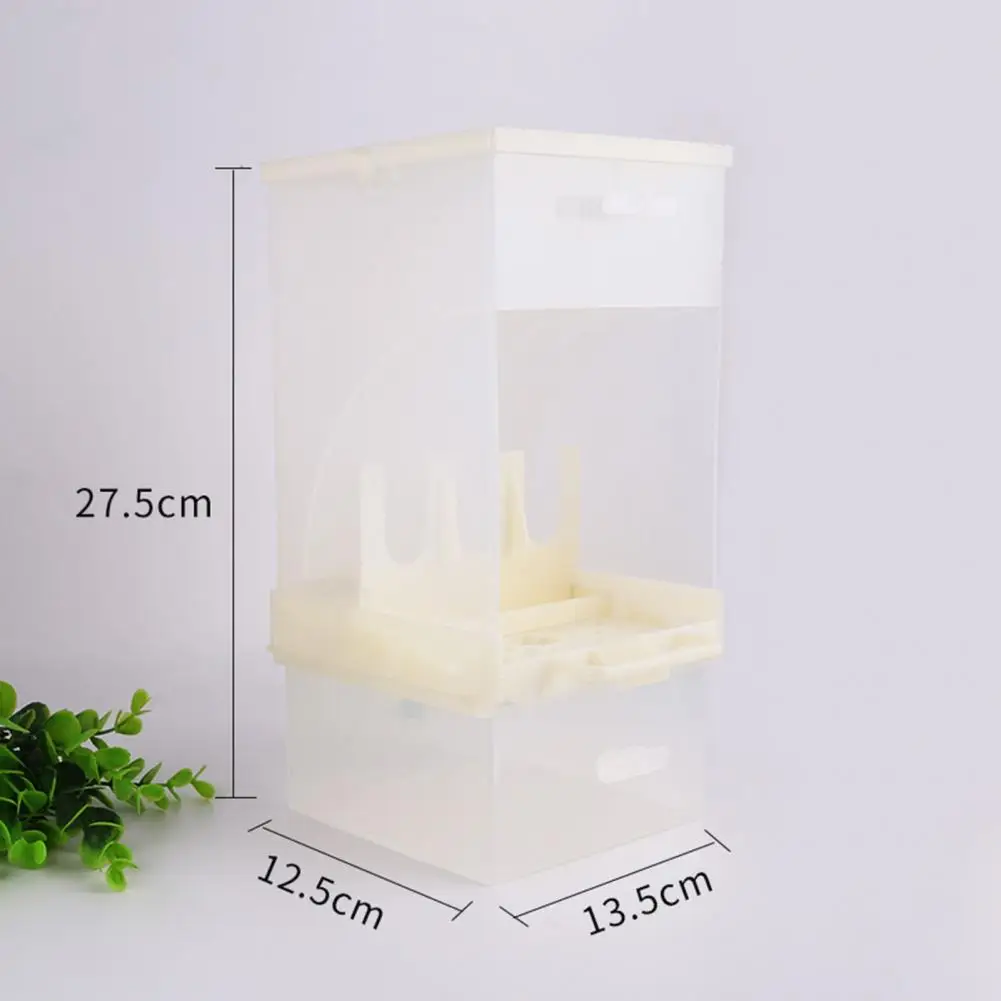 El dispensador cuenta con una gran capacidad, lo que permite un almacenamiento a largo plazo para satisfacer las necesidades de comida de su ave durante varios días. Fabricado con materiales de alta calidad, es duradero, saludable y respetuoso con el medio ambiente. El diseño transparente le permite controlar los niveles de alimentos fácilmente, asegurando recargas oportunas.