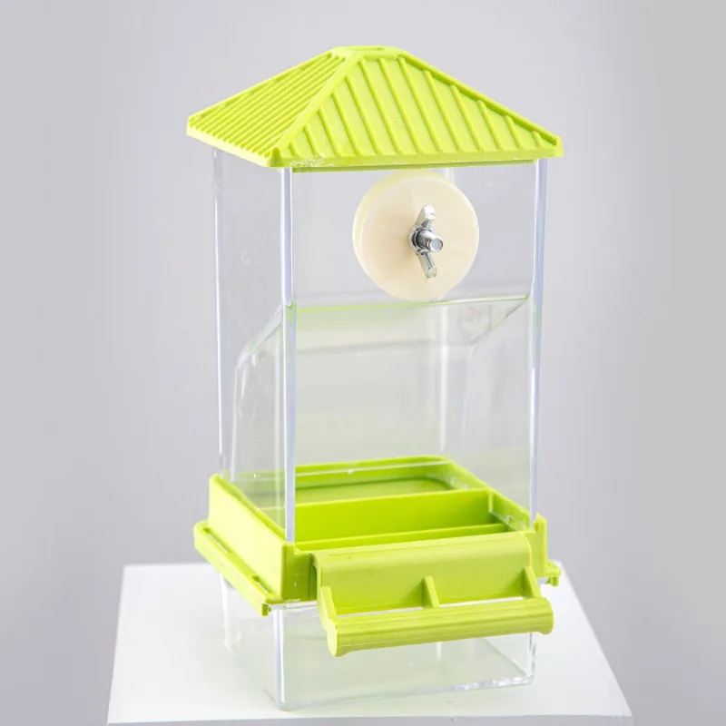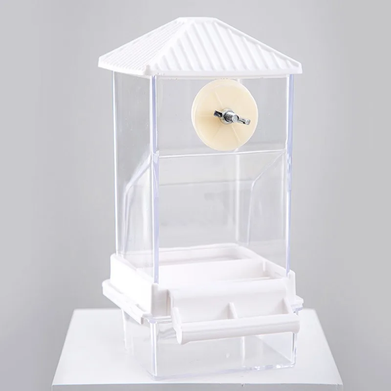 Comedero automático para pájaros, dispensador de semillas con diseño antisalpicaduras, montado en jaula, sin batería, con percha para pájaros y loros, 1 ud.