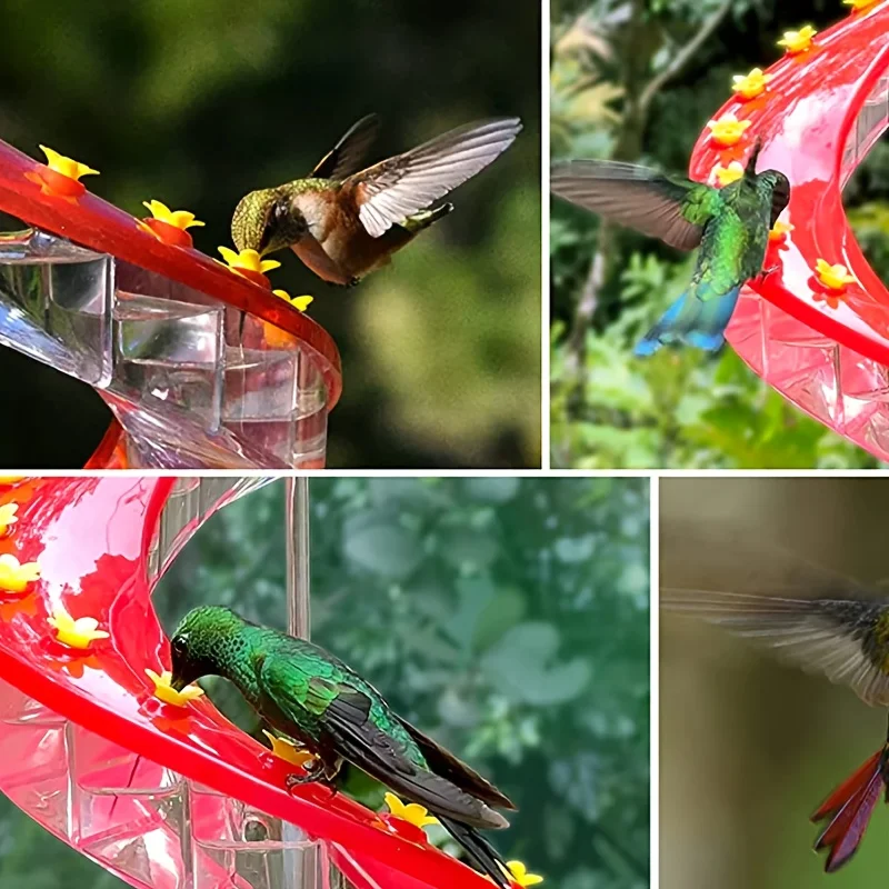 Comedero para colibríes en espiral, comedero para pájaros al aire libre a prueba de fugas con Base transparente, diseño fácil de limpiar para decoración de jardín y Patio
