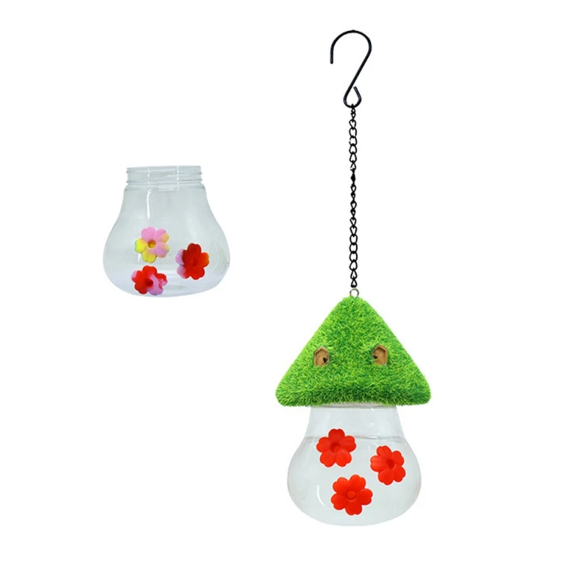 Comedero para colibríes para exteriores, comedero colgante con forma de seta para pájaros con puertos de alimentación de flores para decoración de jardín al aire libre y patio trasero