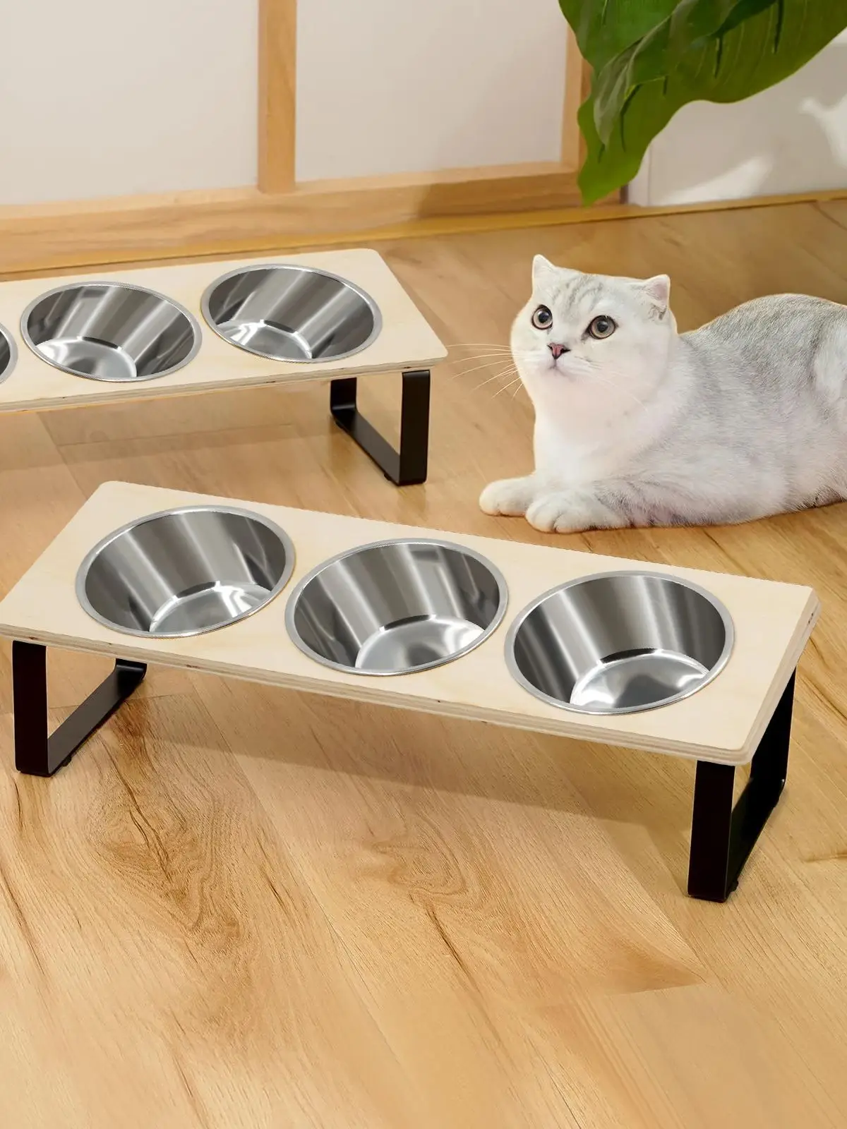 Elevated Cat Feeder with 3 Stainless Steel Bowls Dry/Wet Food & Water Station Promotes Healthy EatingIdeal for Multi-Cat Homes