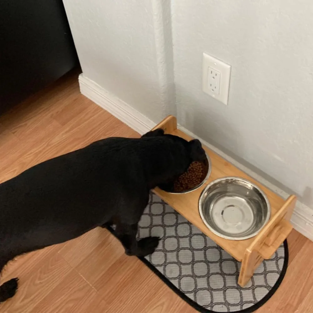Quality Material: the elevated dog cat bowls are made of bamboo material with high strength, odorless and non slip, sturdy and stable, smooth and coated with moisture-resistant varnish for easy cleaning; The stainless steel bowl is very sturdy, not breakable, dishwasher safe, easy to clean and maintain