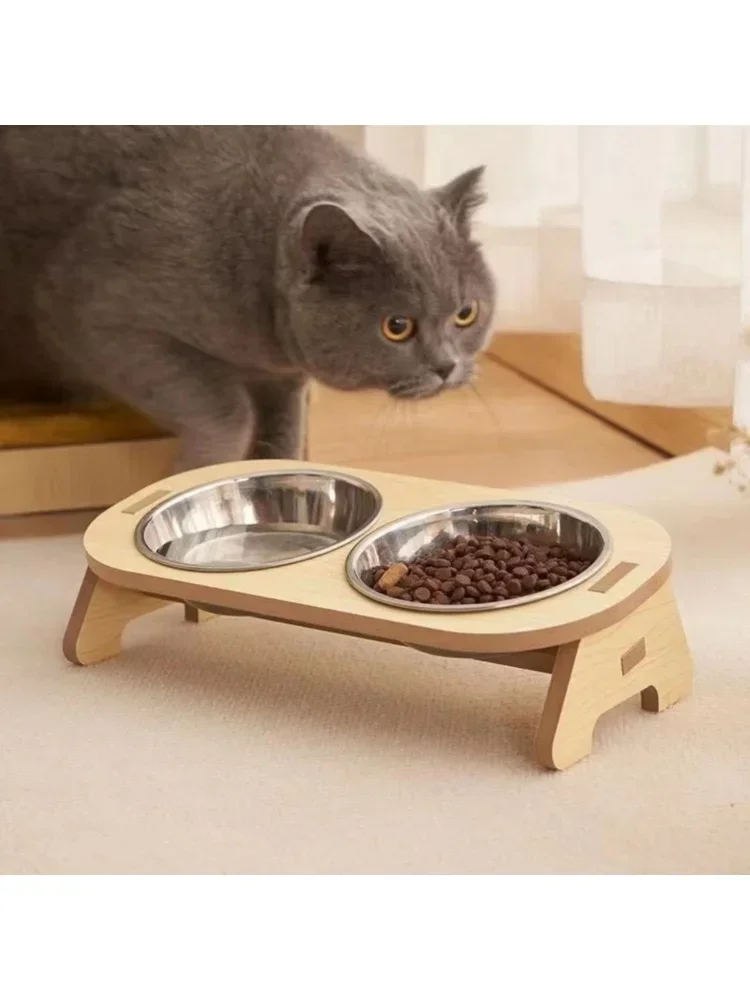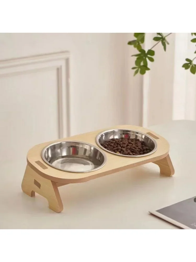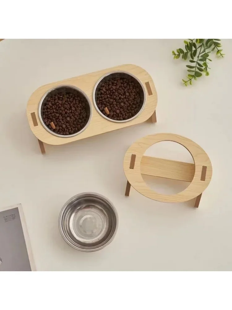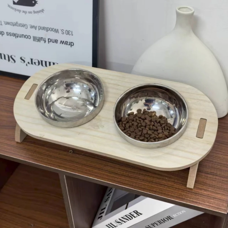 Material: base de madera maciza + tazones de acero inoxidable aptos para uso alimentario.