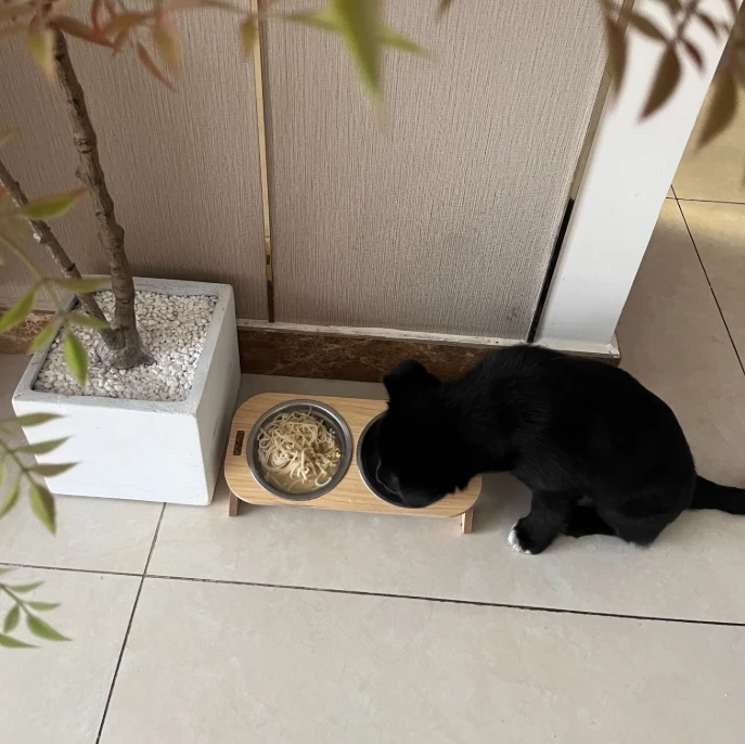 Base estable antivuelco:Cuenta con una base de madera ancha y pesada que evita que se vuelque y se derrame, manteniendo los pisos limpios y asegurando que su mascota pueda comer sin alterar su tazón.