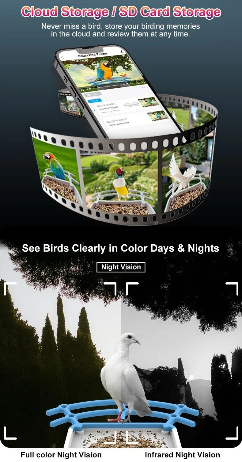 Comedero inteligente para pájaros con cámara, vídeo HD de 2K, identificación de IA, especie de pájaros con energía Solar, captura automática de vídeos y notificación de aves