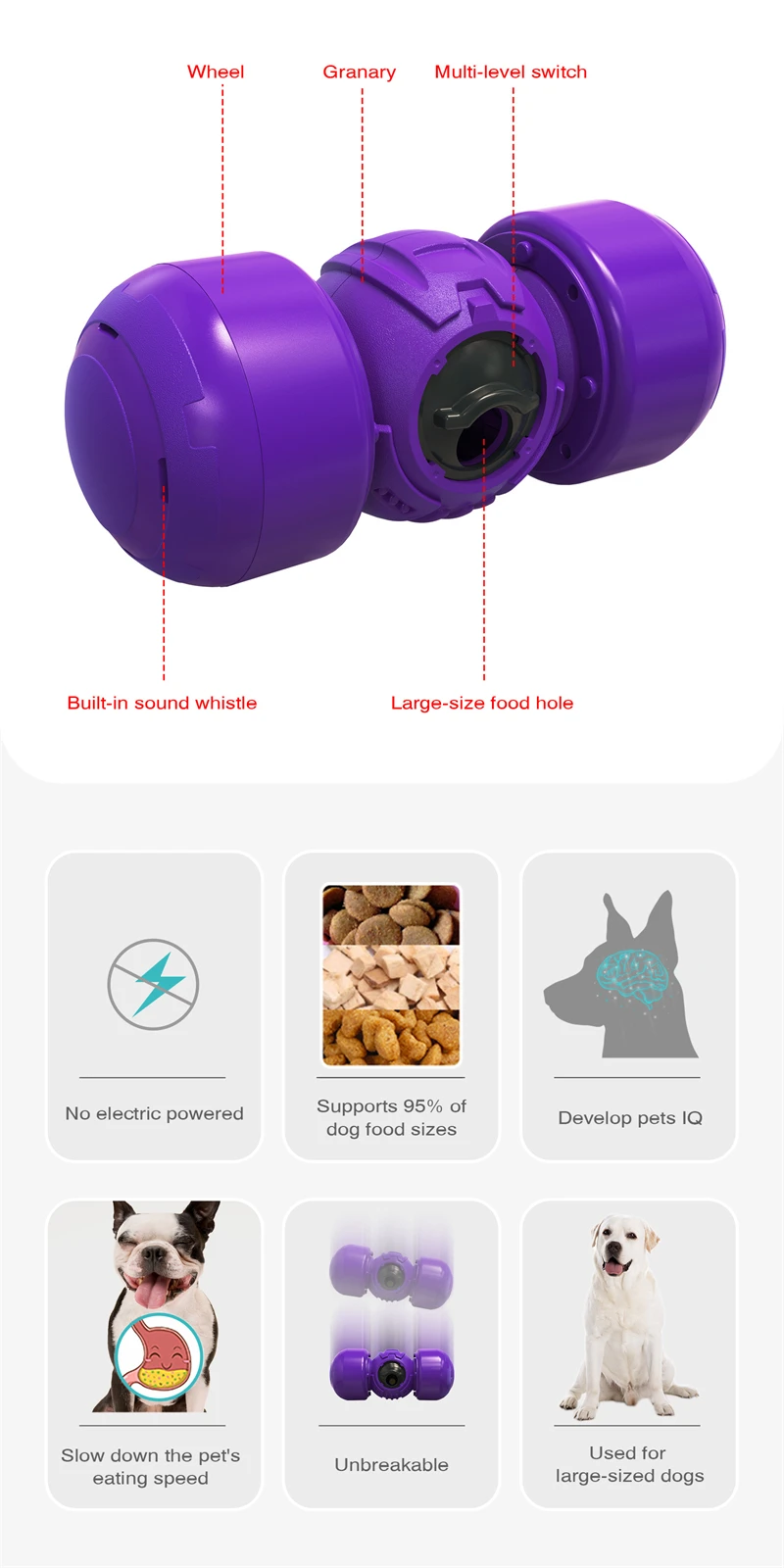 Comedero lento para perros, dispensador de comida ajustable con bola de polea, Wag, juguete Indestructible chillón para Chewer