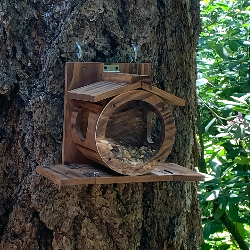 ✅ Atrae las ardillas rápidamente: el acrílico transparente en el frente facilita que la ardilla vea la comida, luego pasa por los 2 orificios a ambos lados para entrar y obtener la comida.