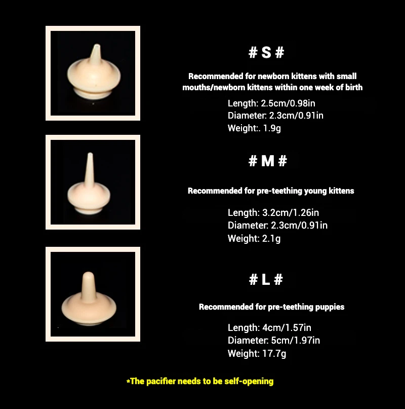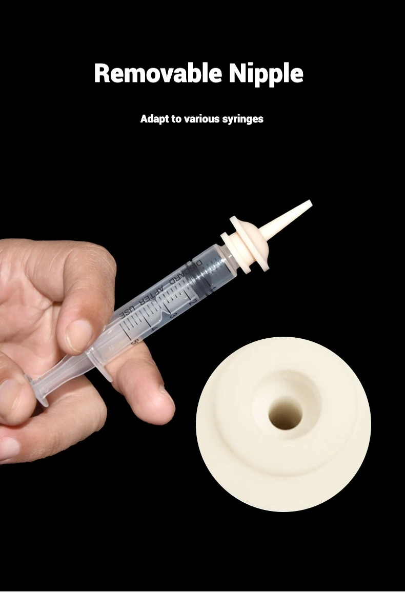 🌟 3. Tetina intercambiable:El biberón incluye una tetina desmontable que se adapta a varios estilos de jeringa, brindando versatilidad para diferentes necesidades de alimentación.Esto lo convierte en una excelente opción para los dueños de mascotas que buscan una solución de alimentación personalizable.