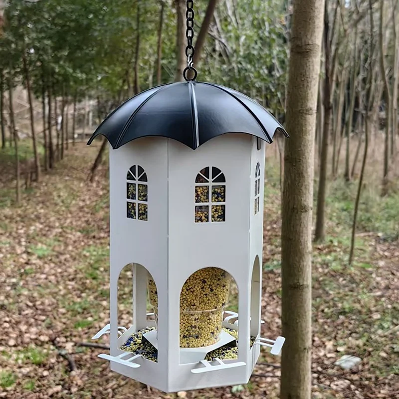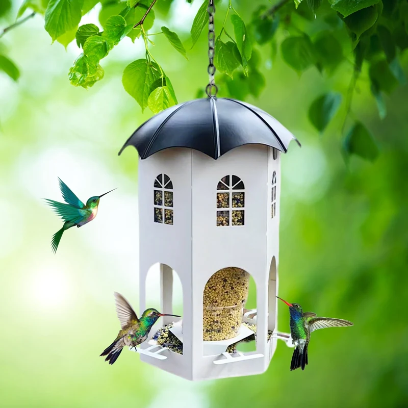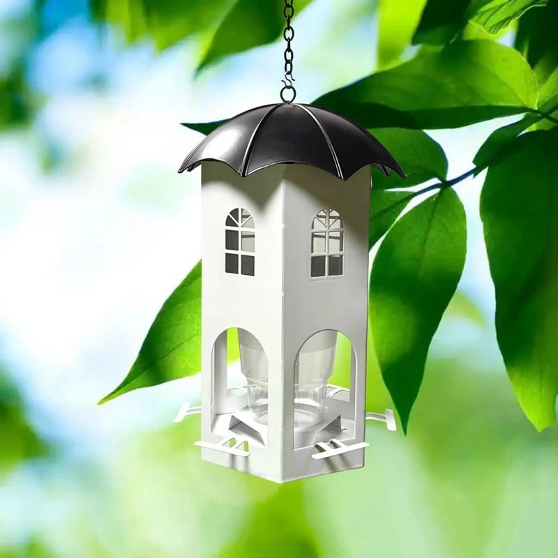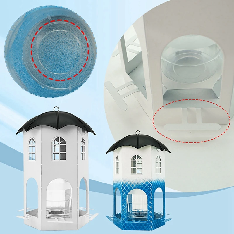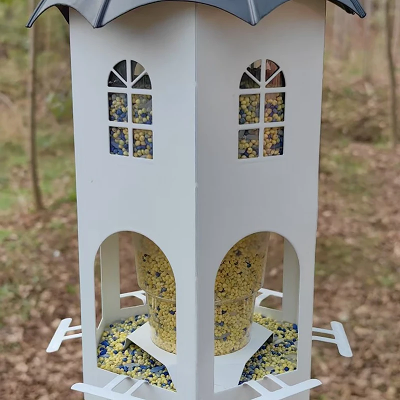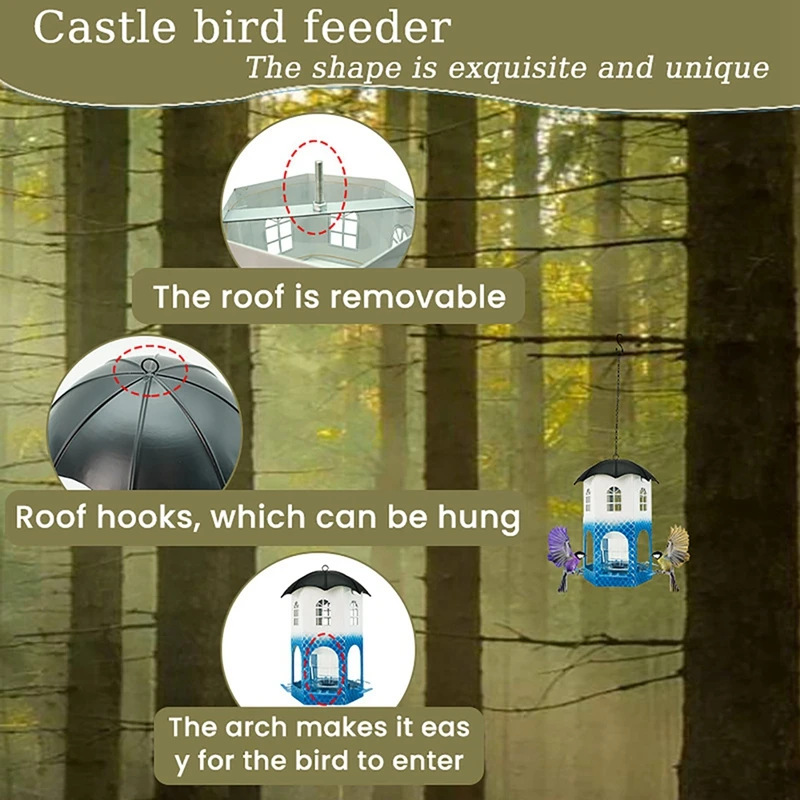【Diseño único】Este comedero para pájaros no solo es funcional, es una hermosa adición a la decoración de su jardín.El diseño de la casa hueca facilita el seguimiento del nivel de la semilla y está diseñado pensando en el cuidado y la comodidad, incluidos orificios de drenaje, orificios de ventilación y vasos para beber.