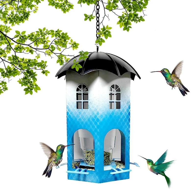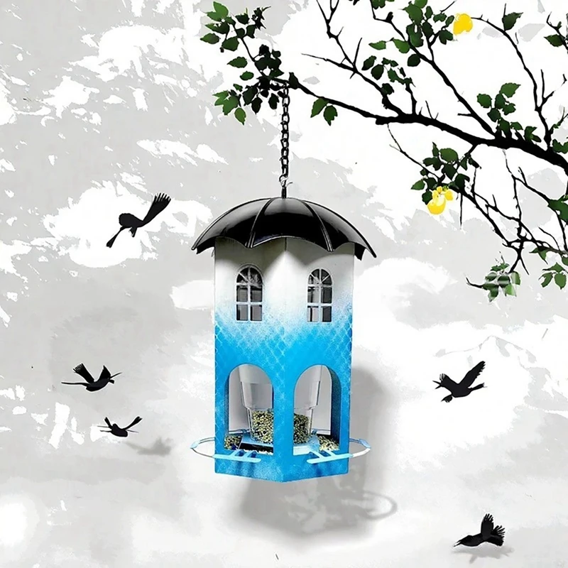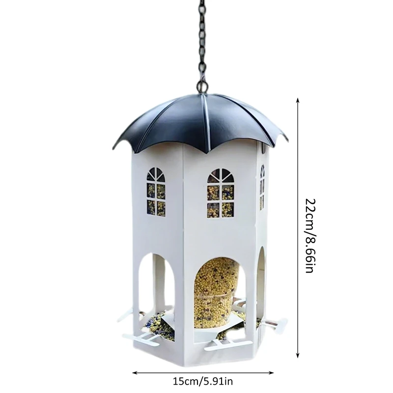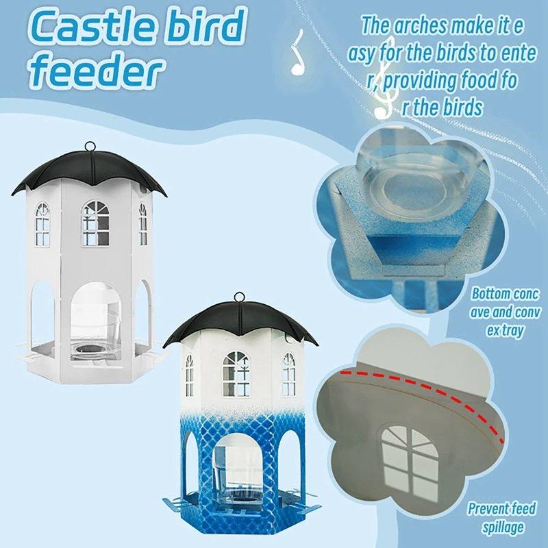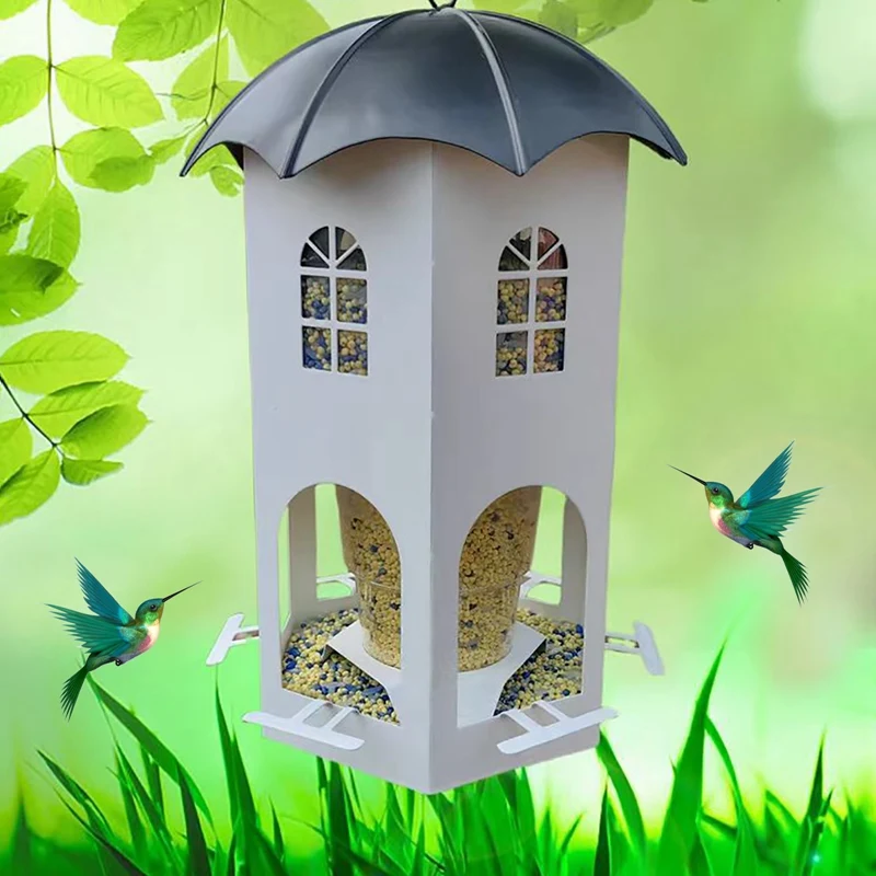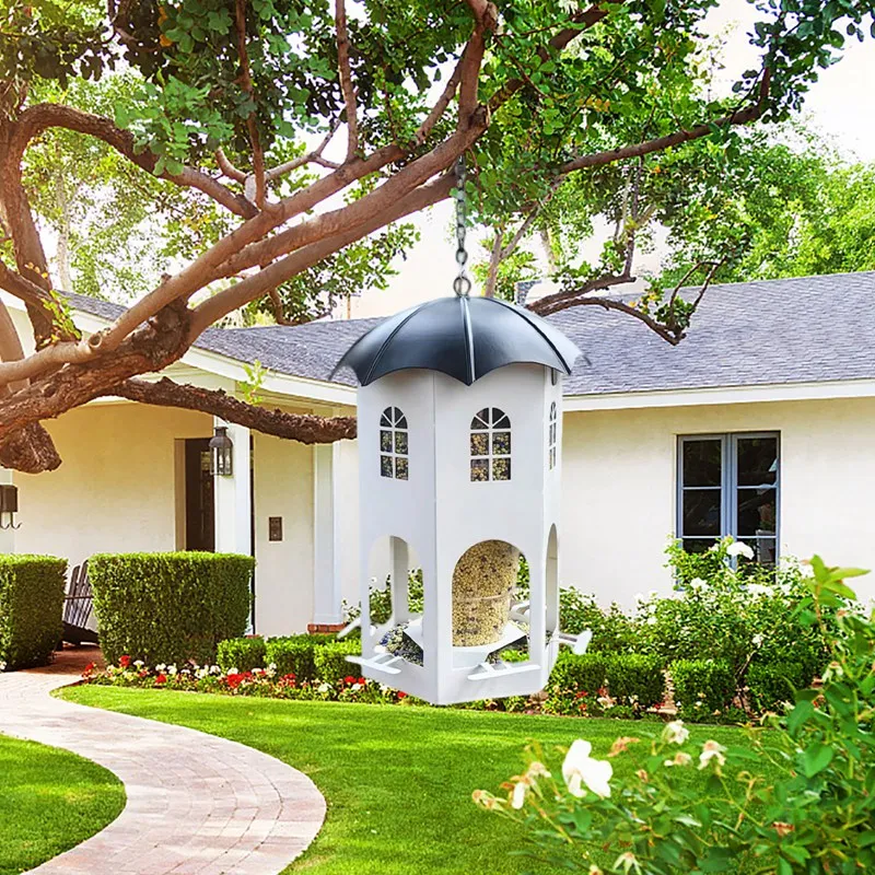 【Diseño único】Este comedero para pájaros no solo es funcional, es una hermosa adición a la decoración de su jardín.El diseño de la casa hueca facilita el seguimiento del nivel de la semilla y está diseñado pensando en el cuidado y la comodidad, incluidos orificios de drenaje, orificios de ventilación y vasos para beber.