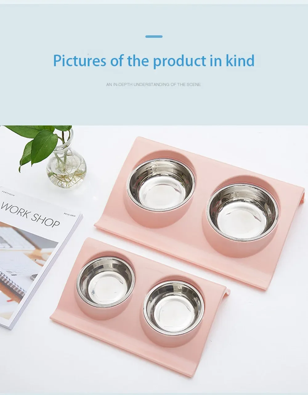 1.El comedero para perros y gatos con cuenco doble de acero inoxidable 2 en 1 está diseñado para perros pequeños y medianos y ofrece una solución de alimentación conveniente para los dueños de mascotas.