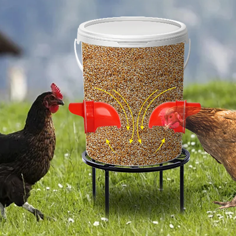 Alimentador de pollo, alimentador de aves, puerto de bricolaje, Kit de alimentación por gravedad, a prueba de lluvia, sin desperdicio, alimentadores de patos para cubos, barriles, contenedores, truchas