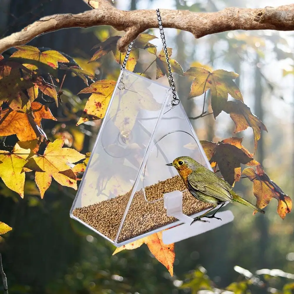 2. [ Unique Clear Design ] Featuring a clear appearance for your beautiful view, Acrylic Bird Feeder is allowing you to experience the wonders of nature, designed in the shape of a triangle to keep it stable.