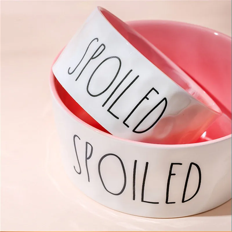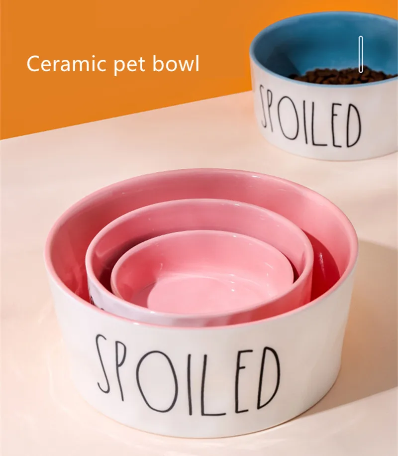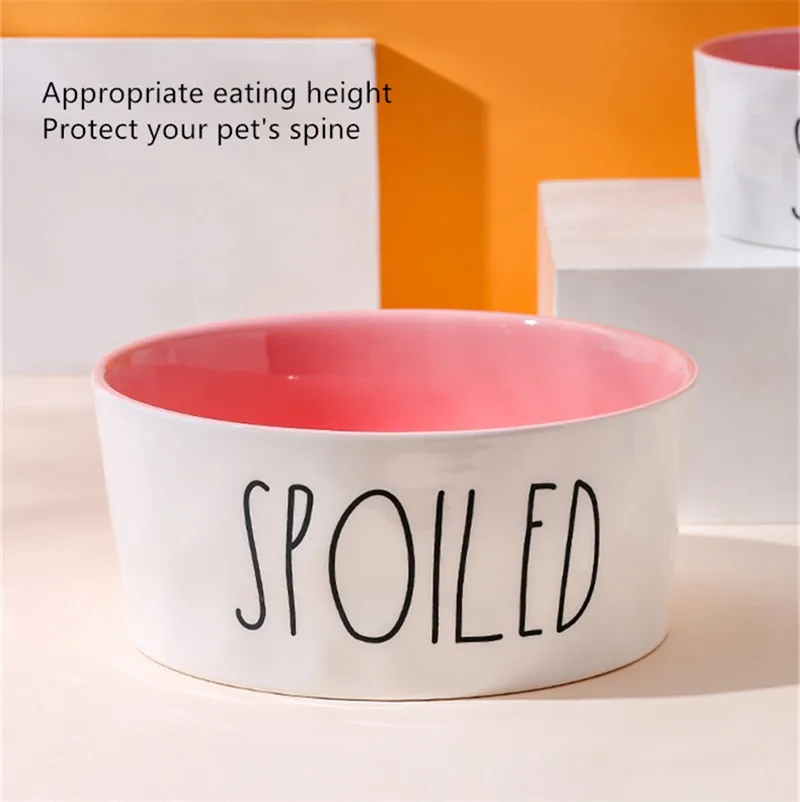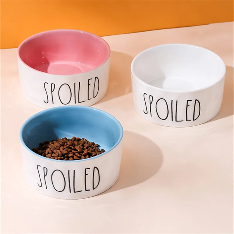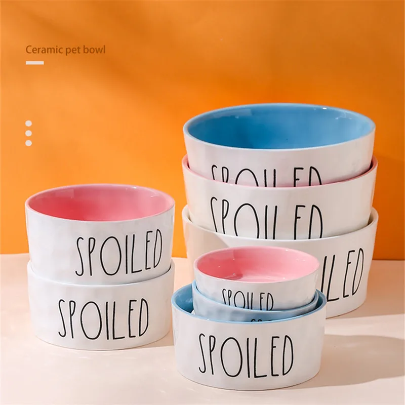 Comederos para mascotas de dibujos animados, cuencos de cerámica antideslizantes gruesos de alta calidad con letras en inglés para perros y gatos, suministros para mascotas, accesorios