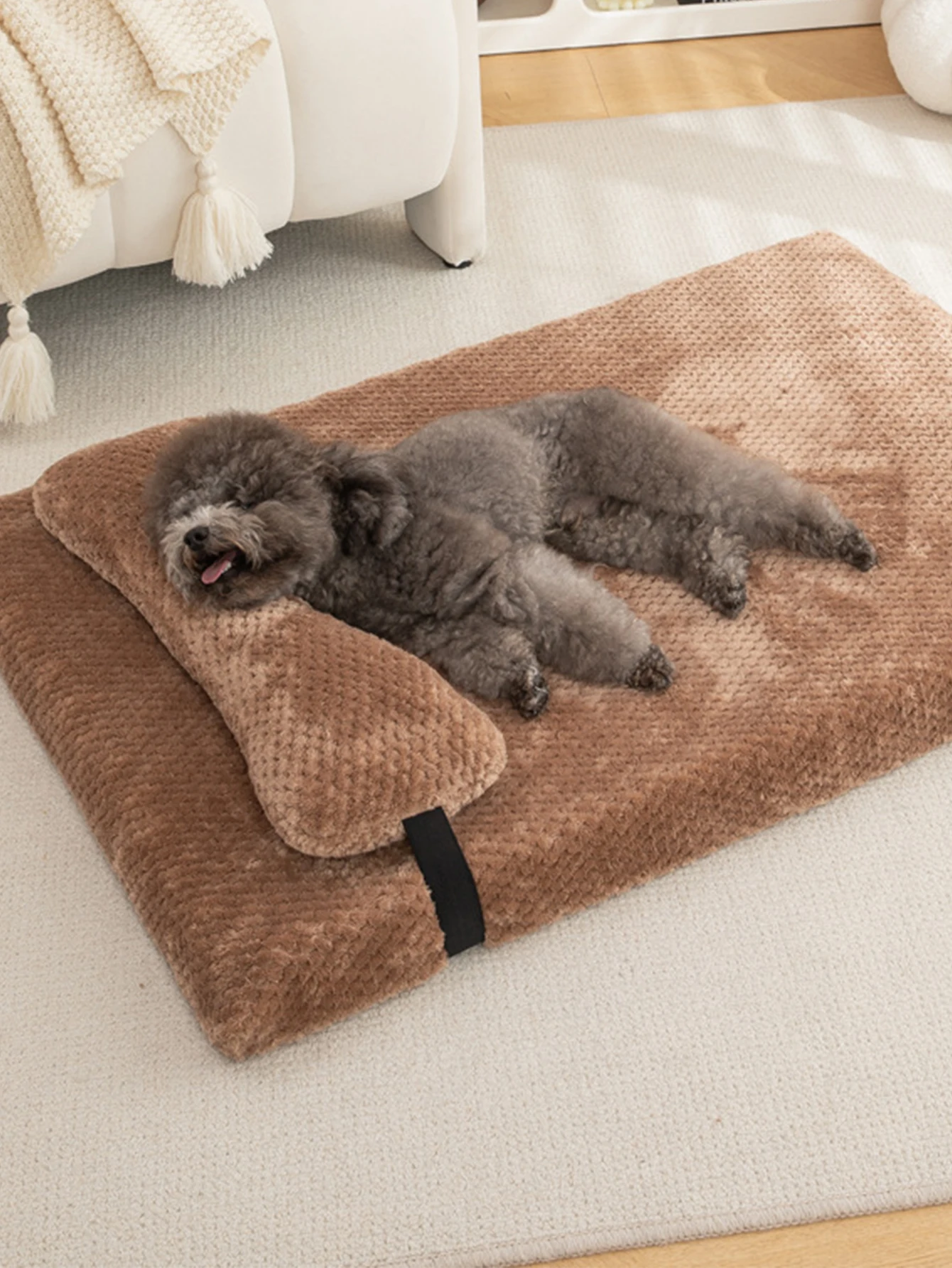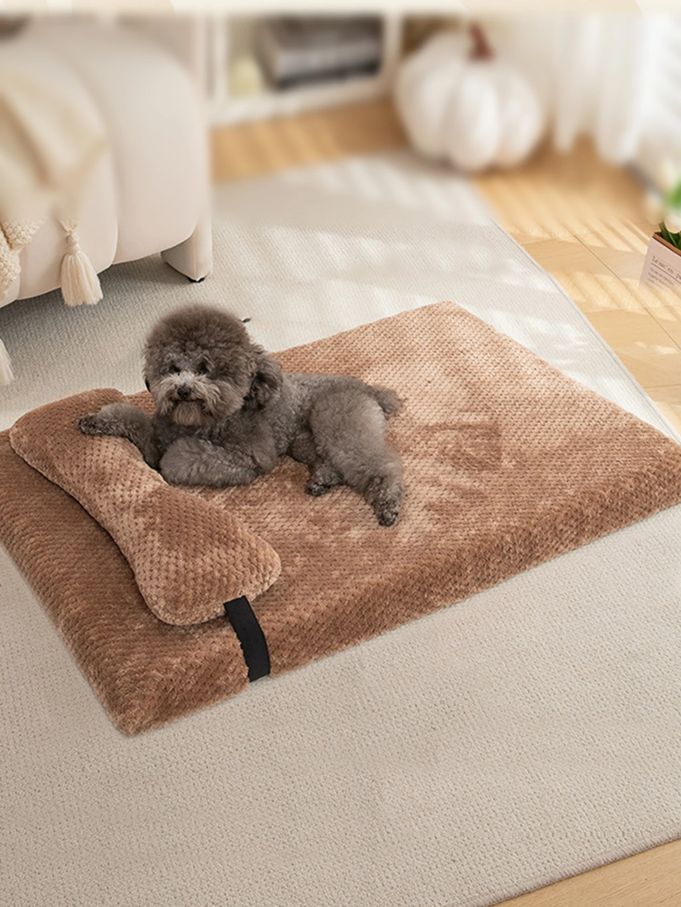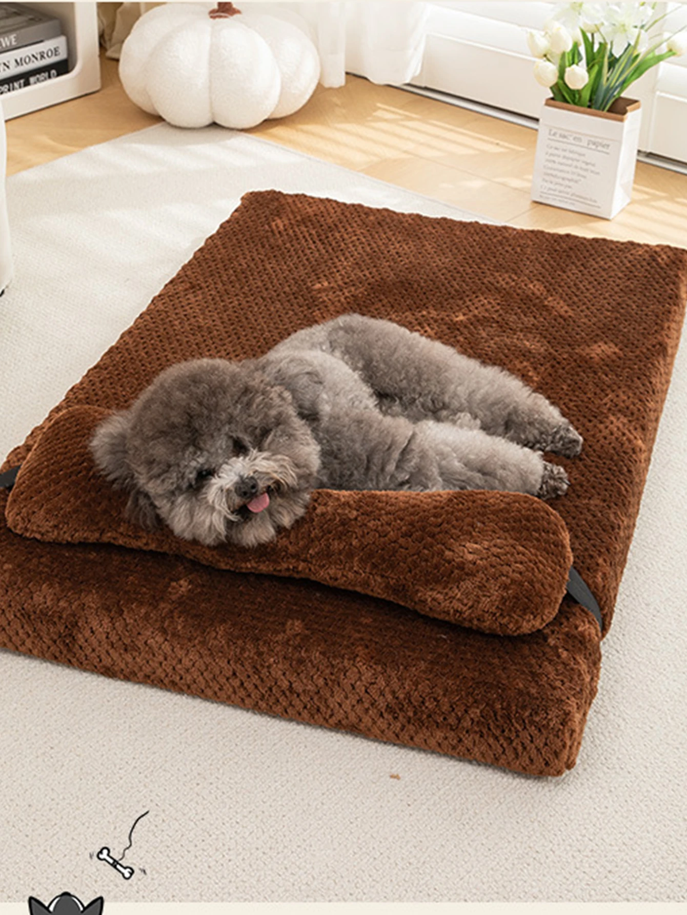 Cómoda y corta de felpa para perros, perrera elástica de esponja 3D para gatos, sofá para perros medianos, cojín suave para cachorros con almohada