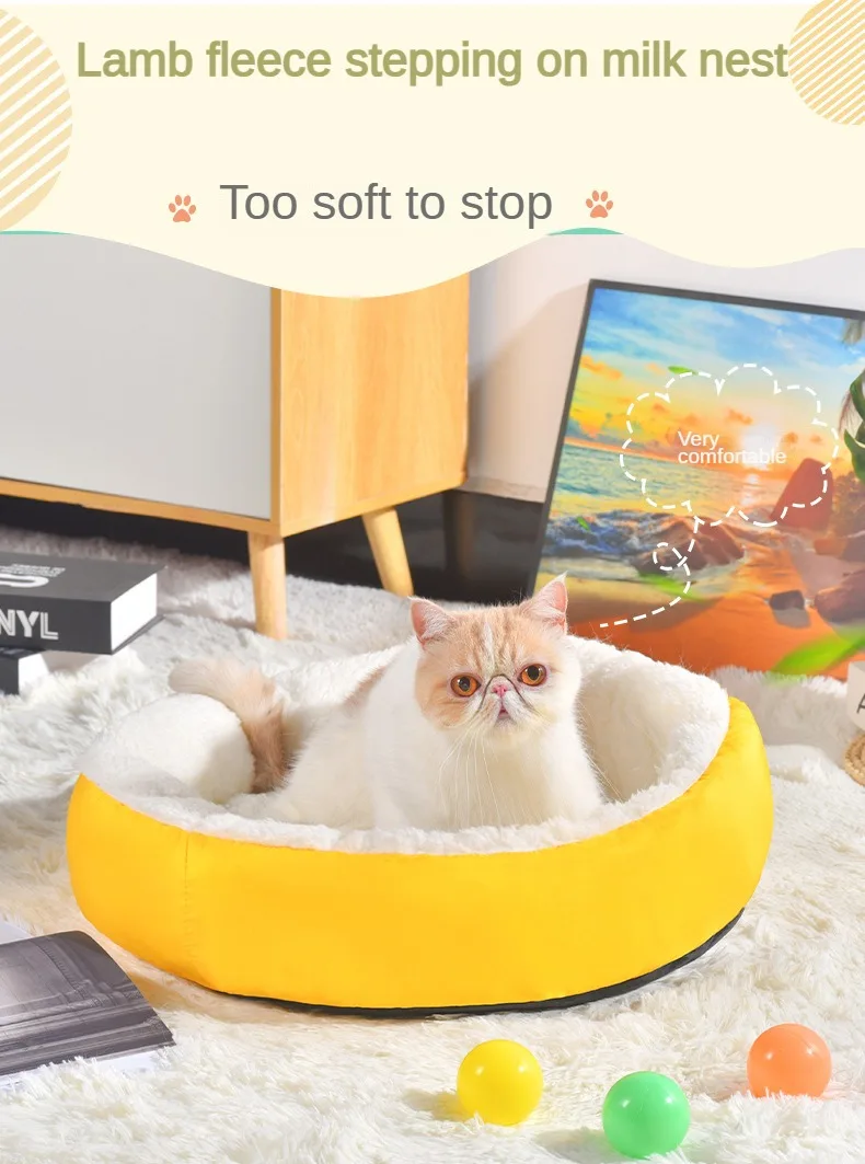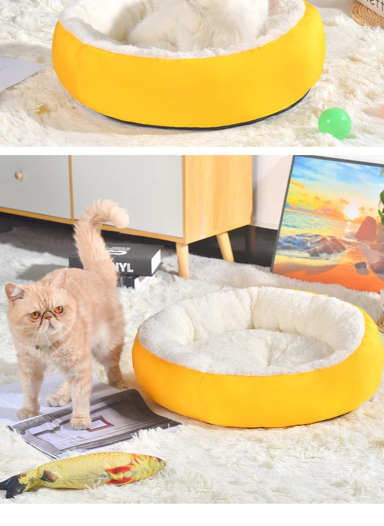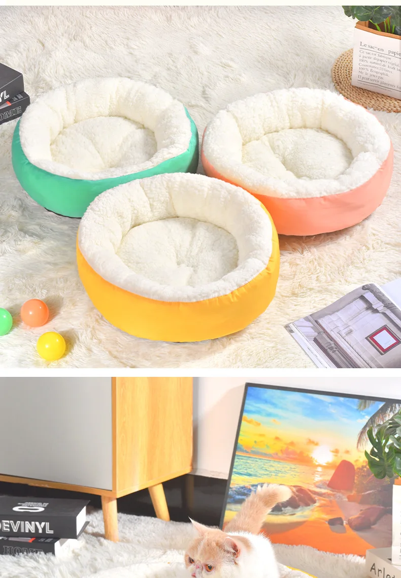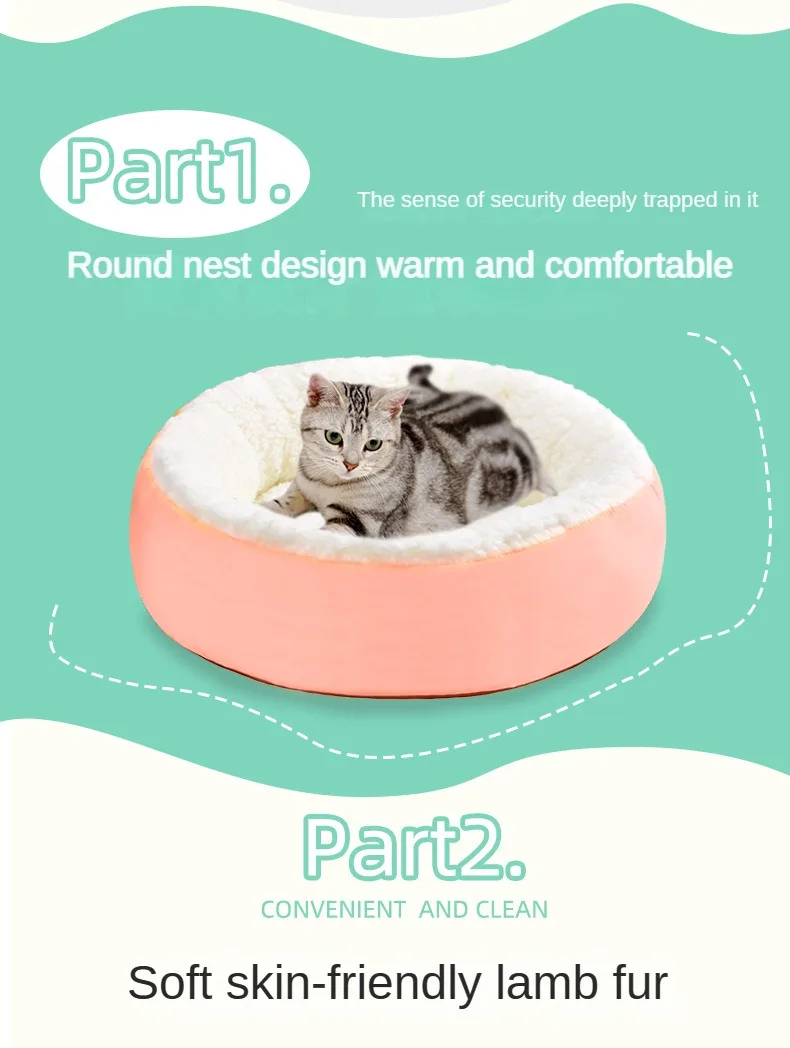 Cómodo nido de felpa para mascotas, nido redondo de Cachemira para gatos, cálido, cómodo, sin combustible, sin electricidad, Invierno