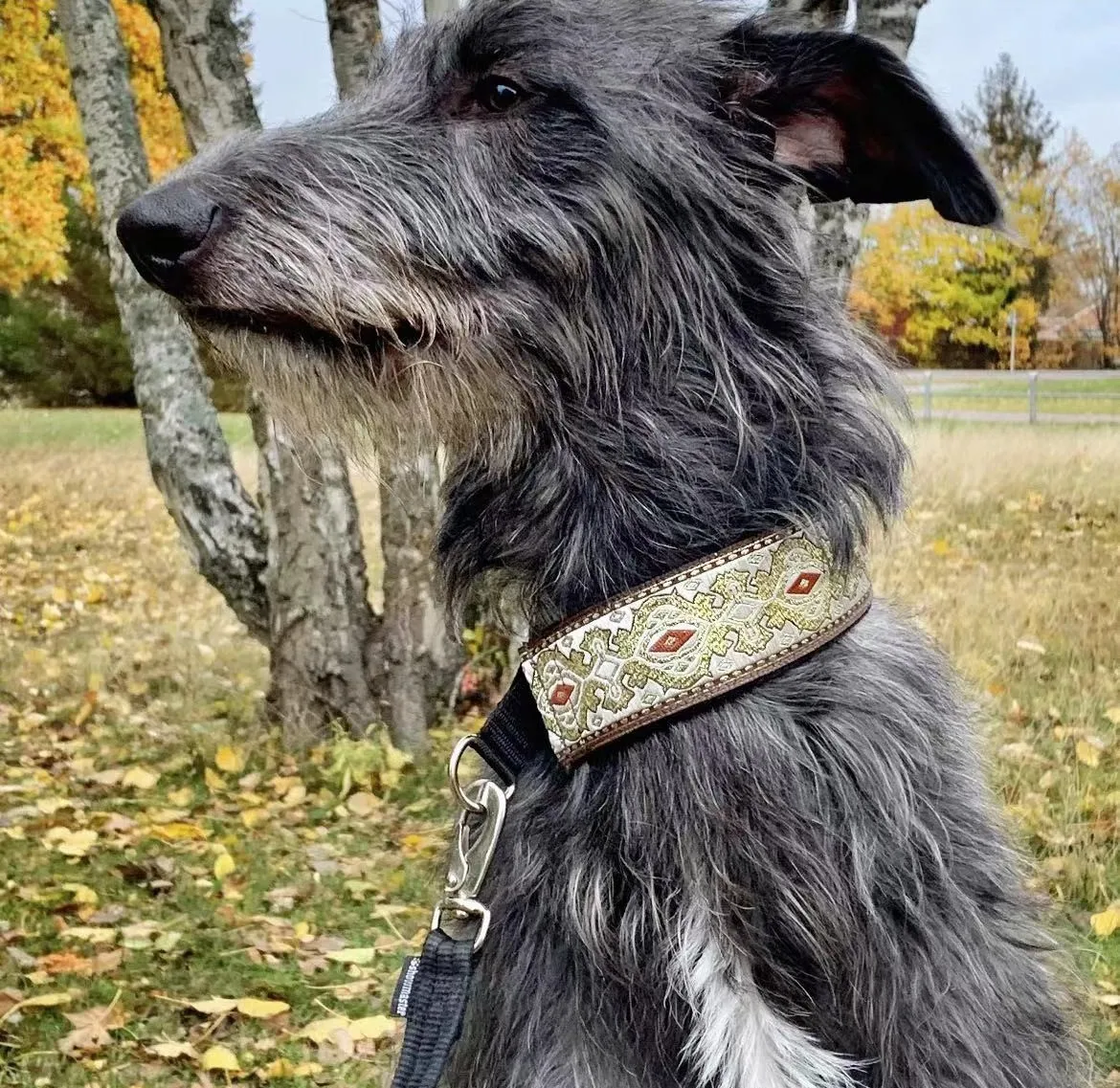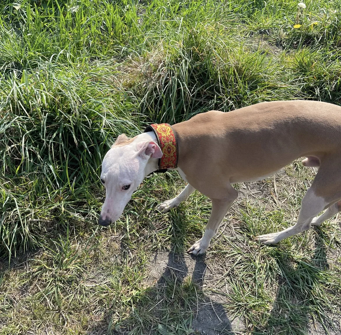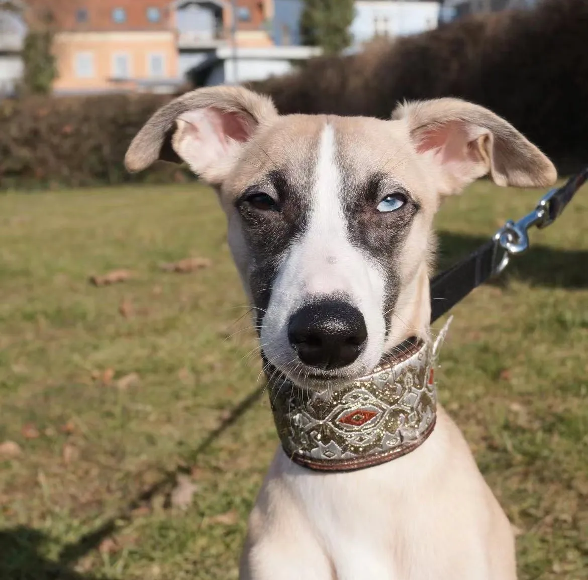 Collar de calidad y muy bonito aunque la talla S no le viene bien a un galgo italiano. Es para whippet.