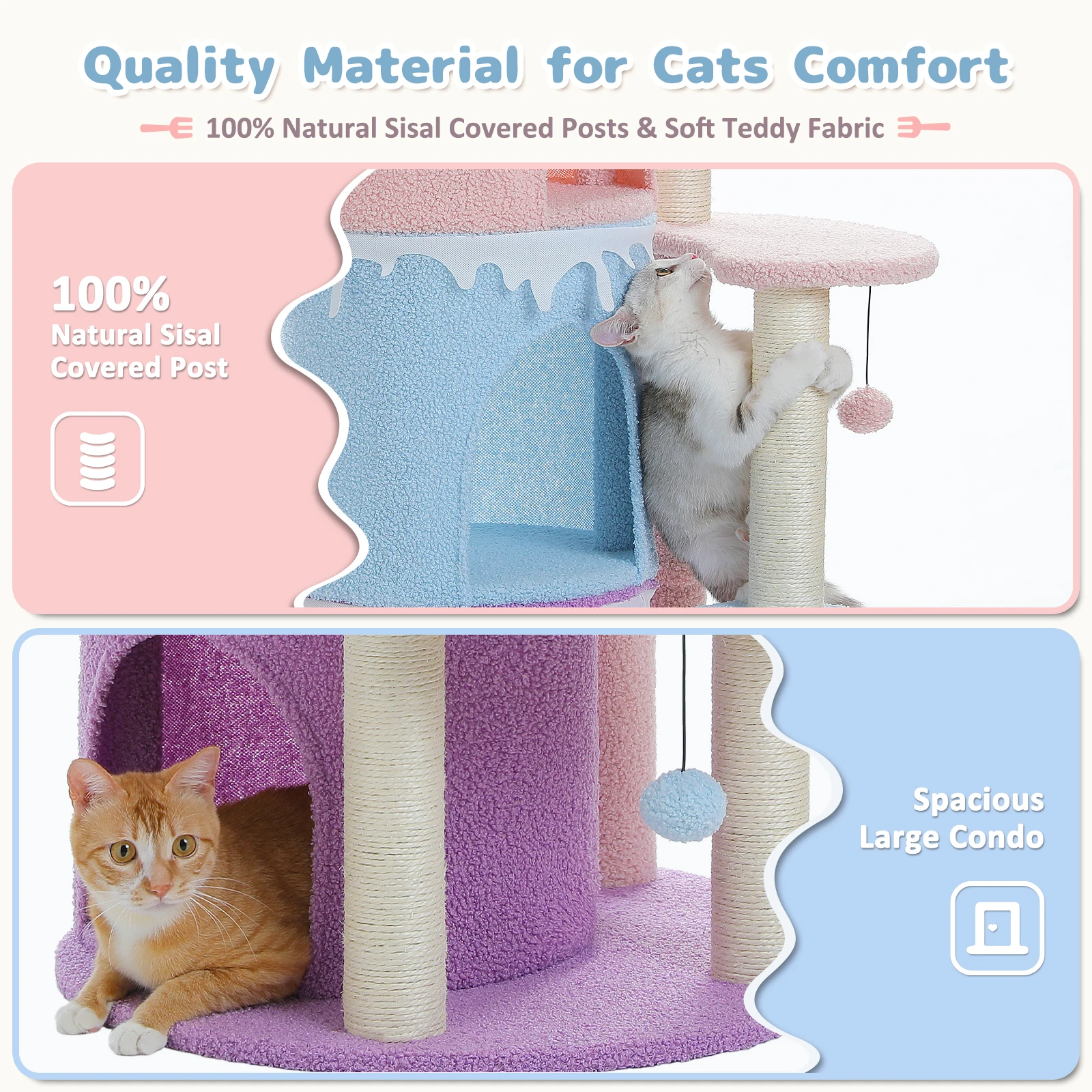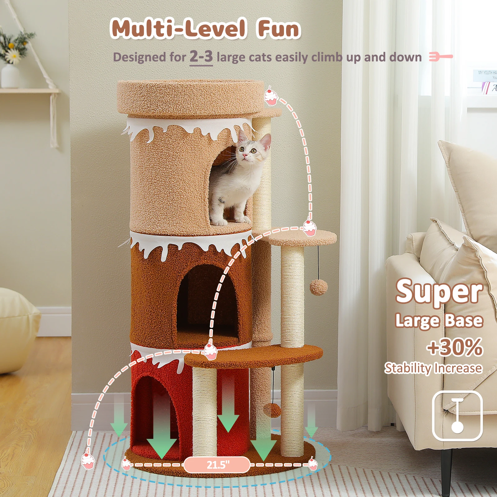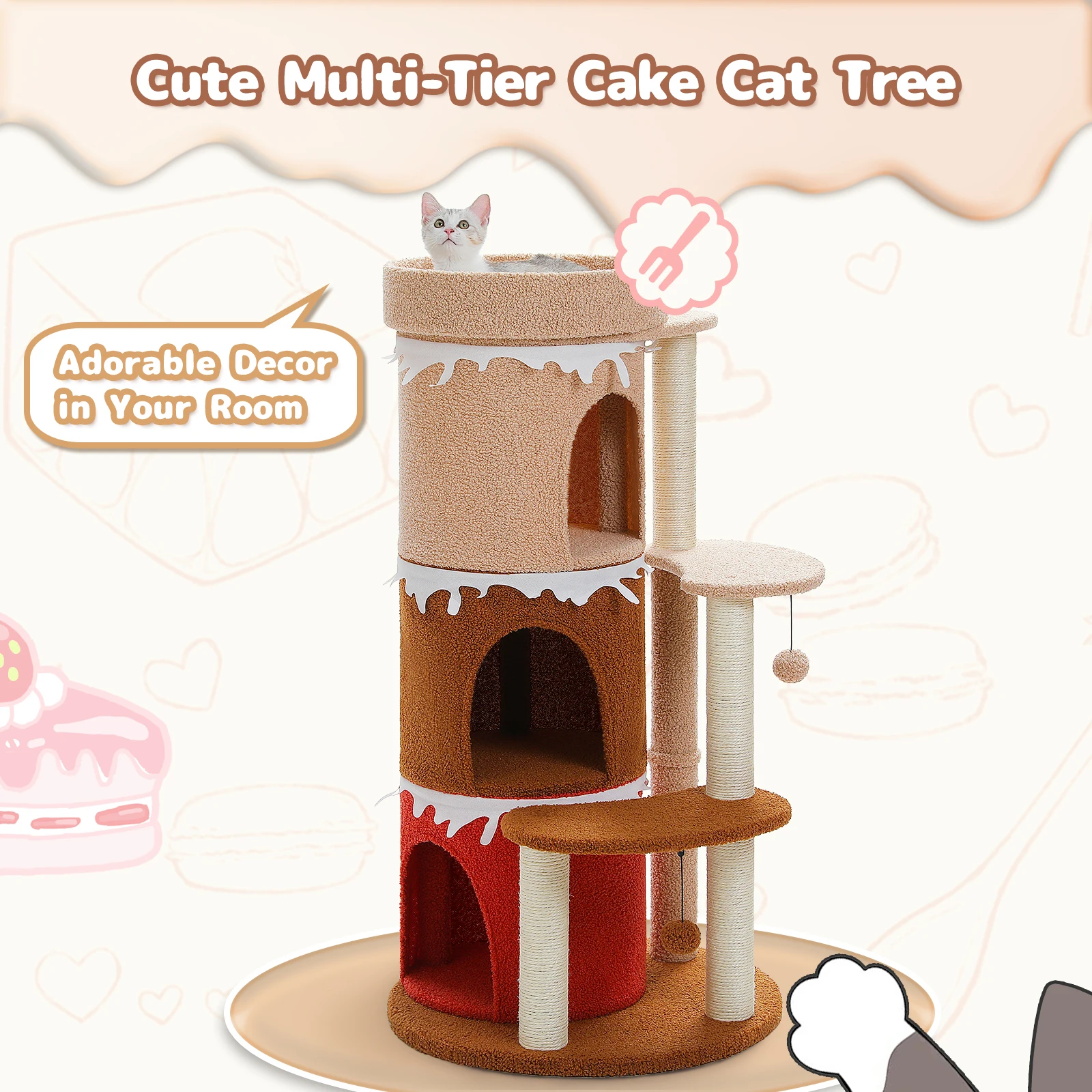 Lindo diseño de pastel de varios niveles: esta adorable casa para gatos con forma de pastel presenta un diseño de 5 niveles con plataformas en espiral, que cumple con los instintos de escalada de los gatos y sirve como decoración linda en su habitación.Un árbol para gatos con pastel de chocolate o una torre para gatos con pastel de vainilla y fresas serán un regalo de cumpleaños favorito para tus amigos felinos.