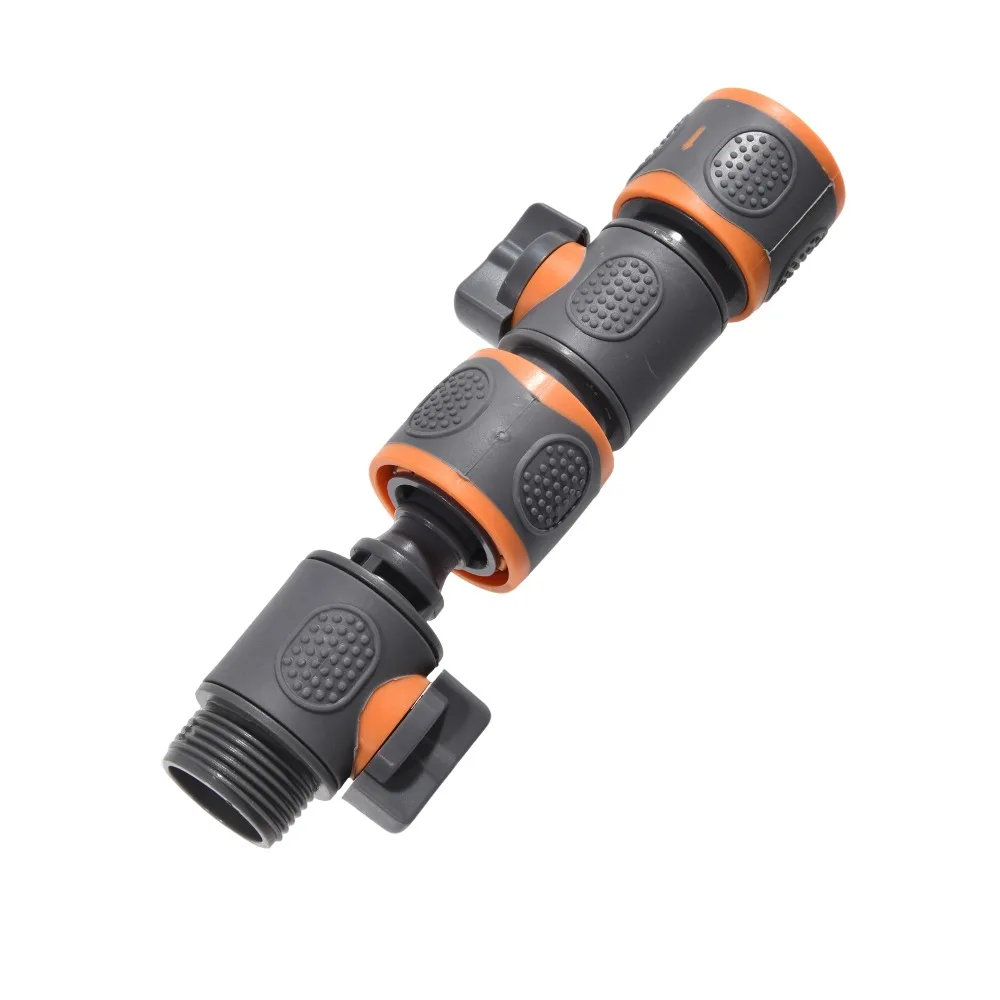 Esto Conector rápido para manguera de jardínestá diseñado para adaptarse Mangueras de 1/2", 3/4" y 1", compatible con Tubos de 16 mm, 20 mm y 32 mm.Con un diseño de acoplador universal, funciona como un Adaptador de parada de agua, accesorio de reparación o conector de pistola pulverizadora, lo que lo hace versátil para riego de jardines, limpieza exterior y sistemas de agua domésticos.
