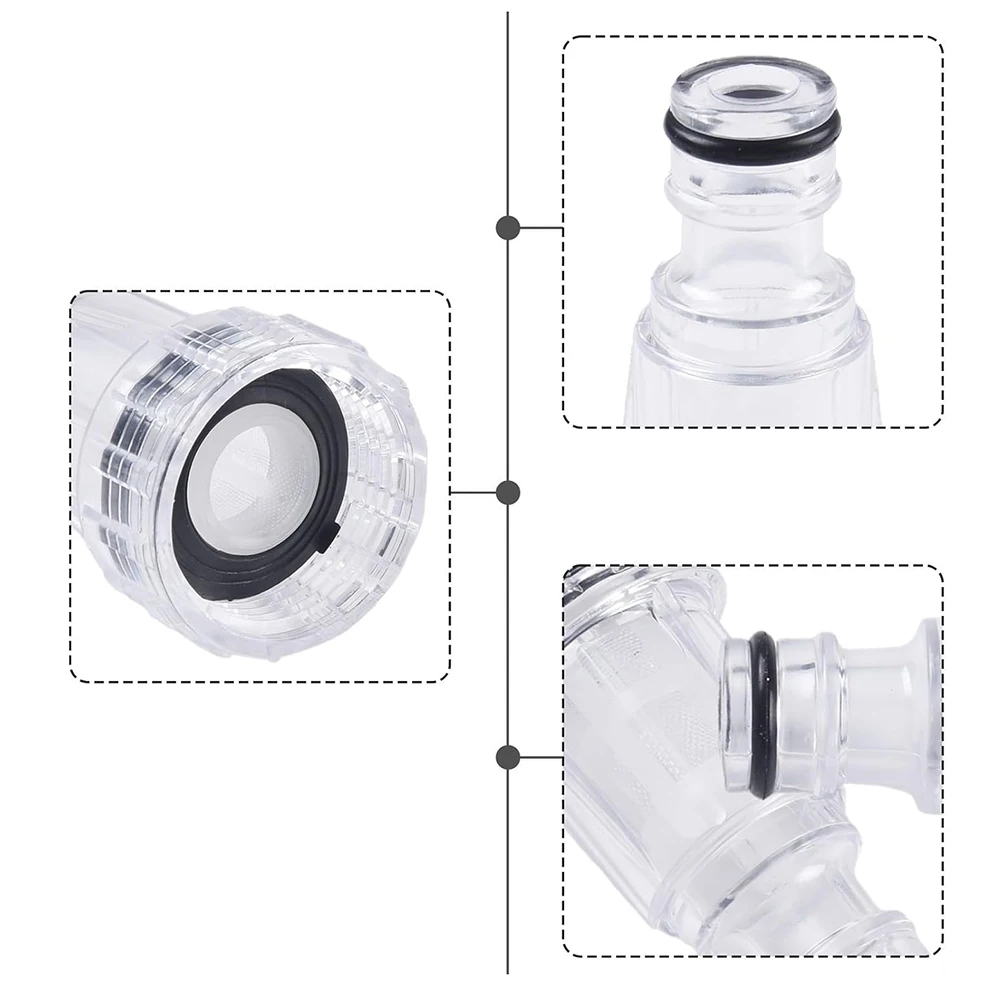 Conector rápido de rosca, adaptador de riego de jardín, junta transparente de agua para lavado de coches con filtro, adaptador de agua