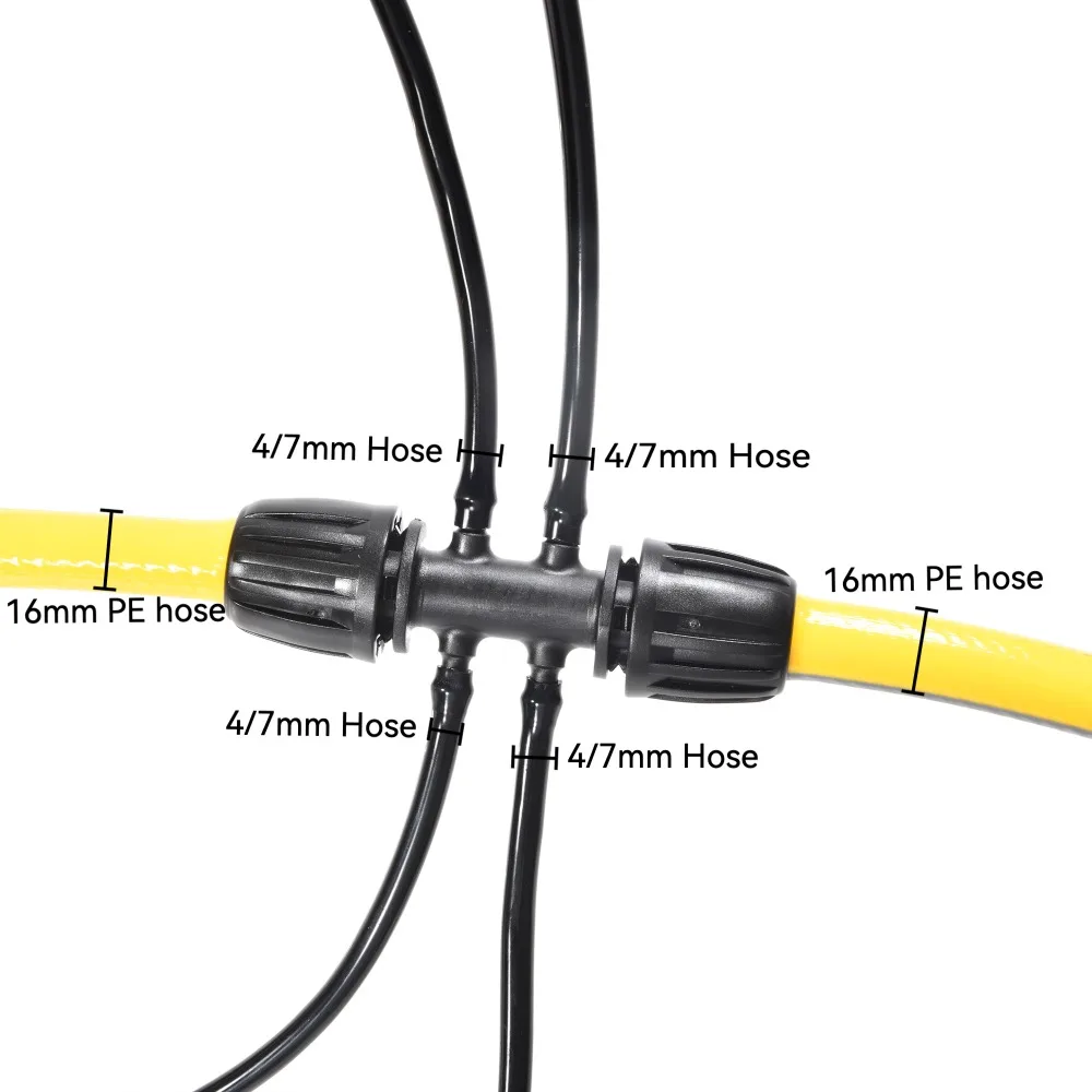 Este conjunto incluye un Conector de tuerca de bloqueo de tubería de PE de 16 mmy un Conector de manguera de 6 vías reductor 4/7, diseñado para sistemas de riego de jardines y agrícolas.Garantiza una conexión segura y a prueba de fugas entre las tuberías principales de PE y los pequeños tubos de goteo, lo que hace que la distribución del agua sea más eficiente para las configuraciones de riego por goteo.
