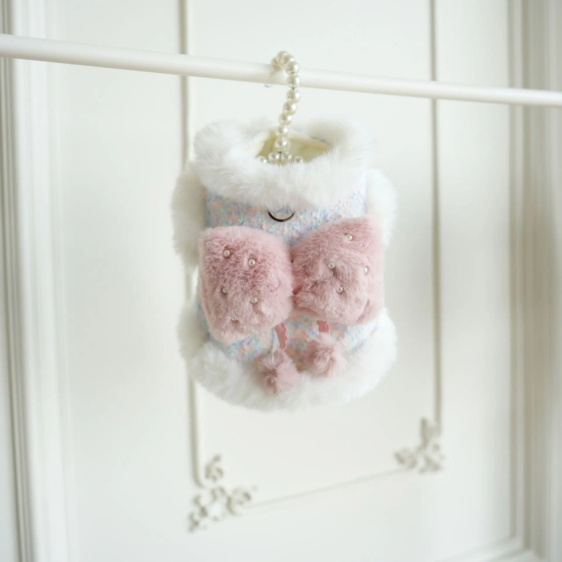 Conjunto de abrigo de algodón con lazo colorido para perro, ropa cálida para gato, chaqueta para perros pequeños, cachorro, oso de peluche, Otoño e Invierno