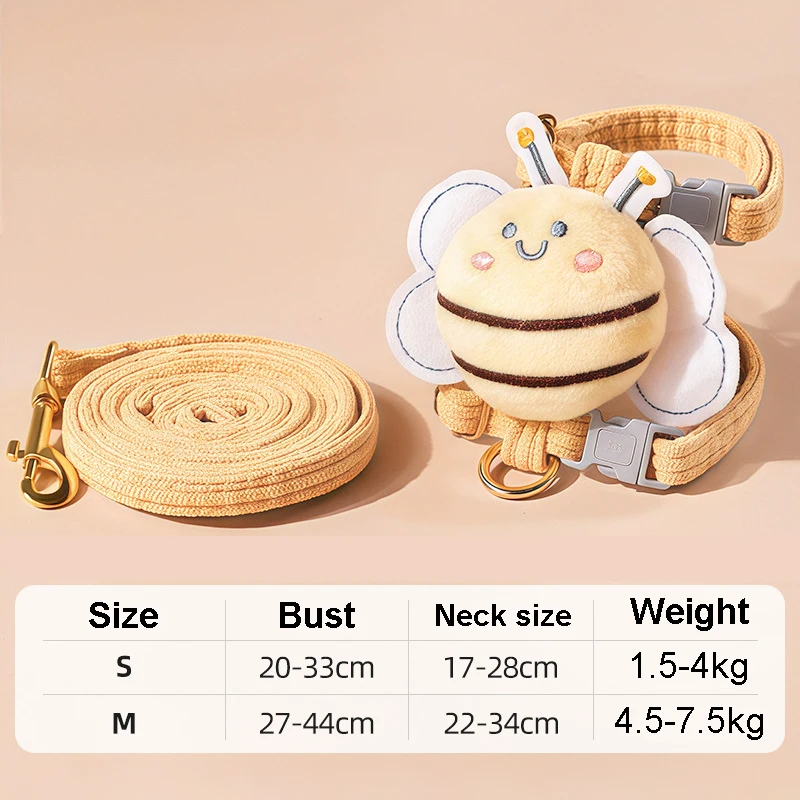 Conjunto de arnés y correa para gatos, arnés ajustable de doble capa con abeja de dibujos animados para perros pequeños y gatitos, arnés para caminar al aire libre para mascotas