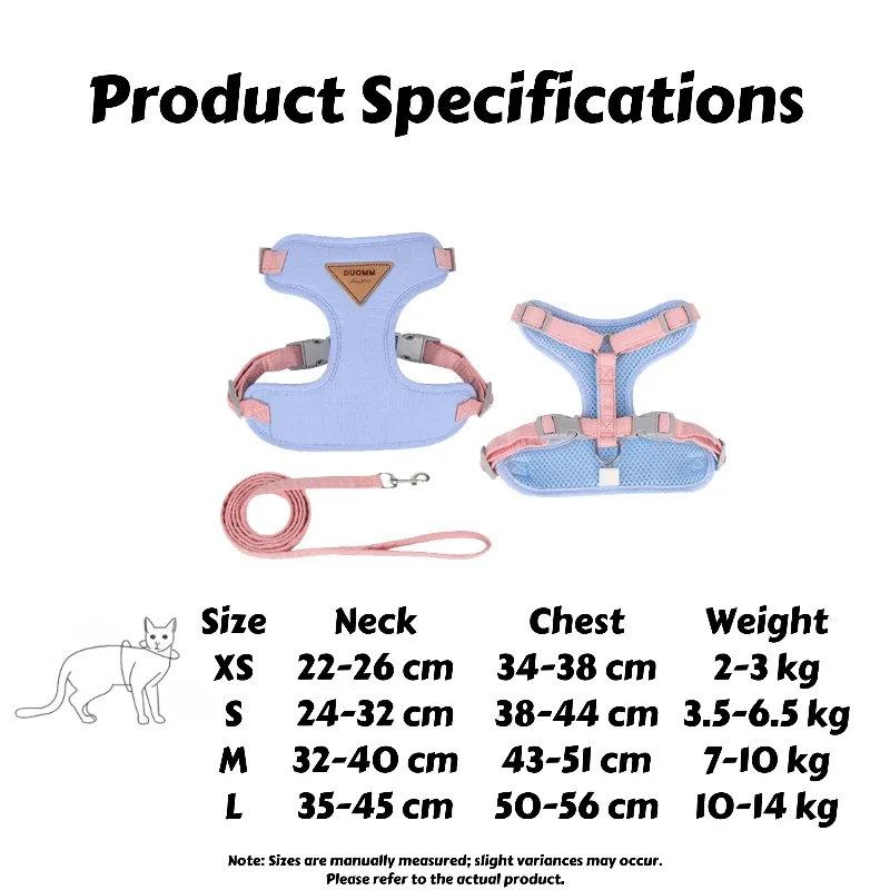 Juego de arnés y correa para gatos a prueba de fugas Chaleco ajustable con insignia de cuero y malla transpirable para gatito/cachorro para caminar al aire libre ✅Diseño a prueba de fugas Sistema de anclaje con correa en HRedistribuye la fuerza de tracción para soportar 25 libras de tirones repentinos. Hebillas dobles ajustables(cuello y pecho) con forro de silicona antideslizante que garantiza un ajuste perfecto para gatitos/caporros de 2 a 14 kg. ✅Comodidad: primera ingeniería Paneles de malla CoolFlowreducir la temperatura de la piel en 3,5°C. Protectores acolchados para sisaProtege las delicadas axilas durante los saltos y giros.