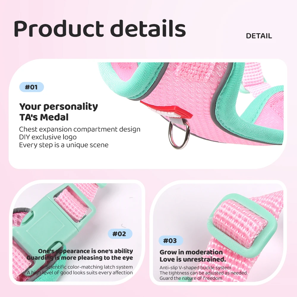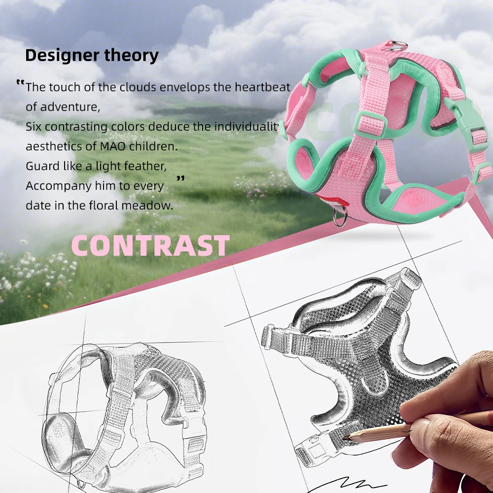 El diseño liviano de este arnés hace que su mascota se mueva libremente sin restricciones.