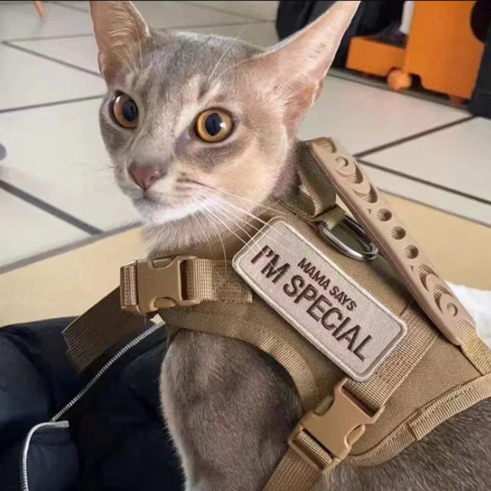 Conjunto de arnés y correa tácticos para gatos para caminar, chaleco grande ajustable a prueba de Escape con parches, fácil de controlar