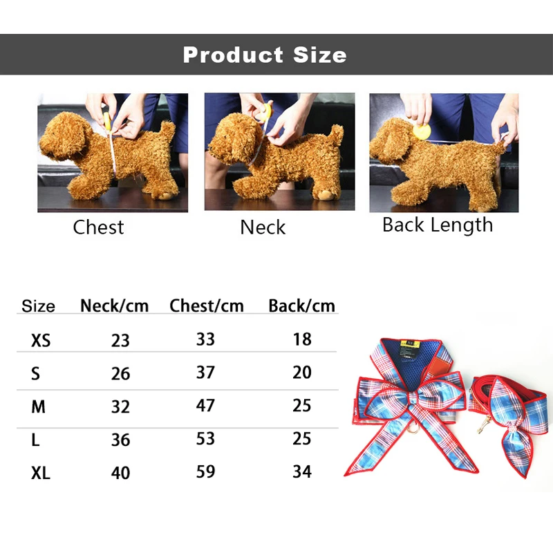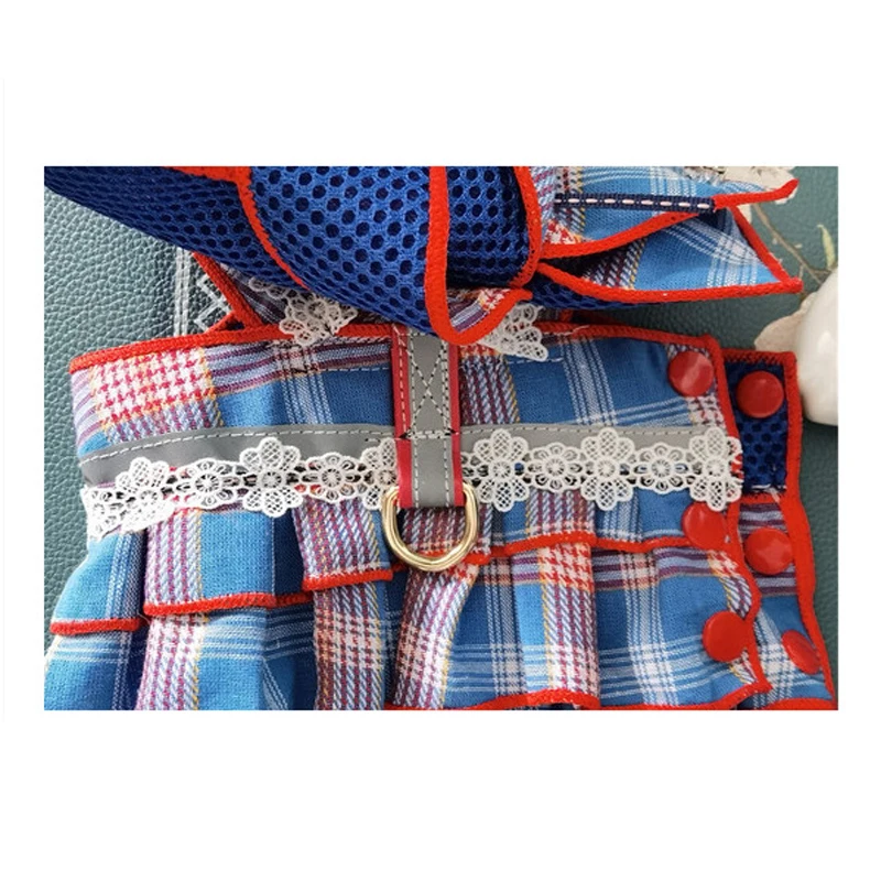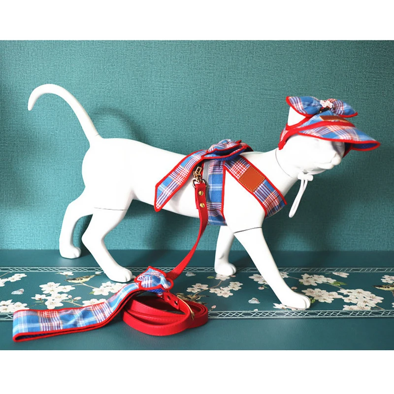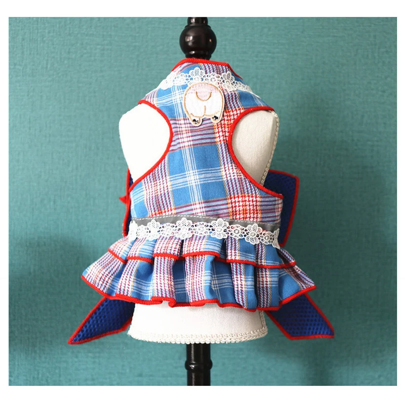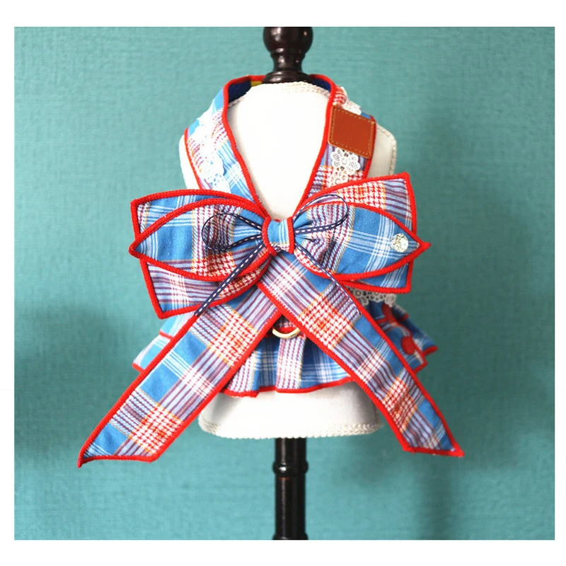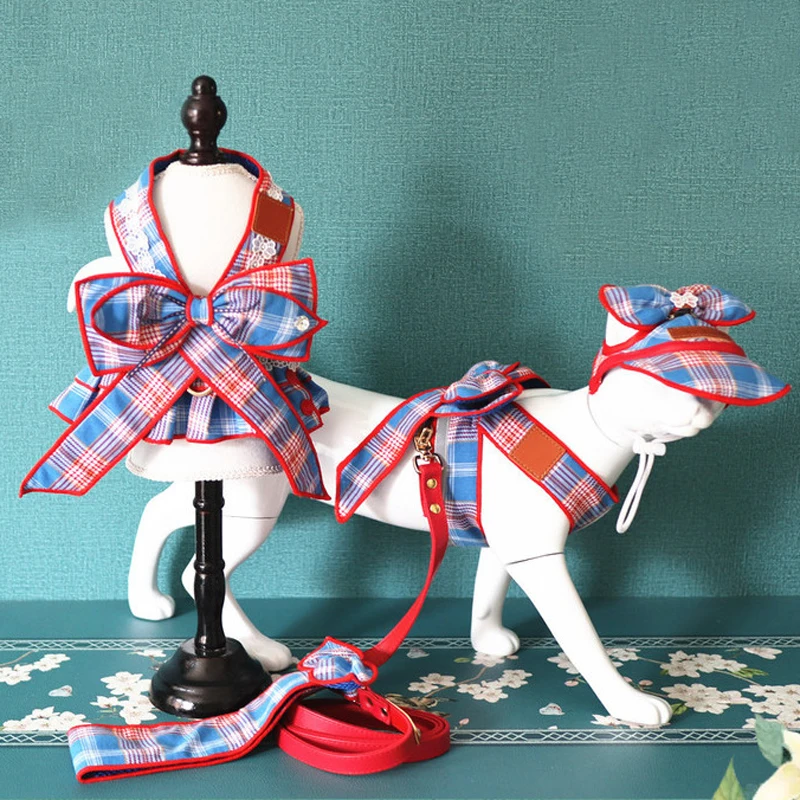 Conjunto de arnés con falda y lazo para perro y gato, ropa de lujo a cuadros, chaleco para cachorro, arnés para caminar, correa para gatos, perros pequeños y medianos