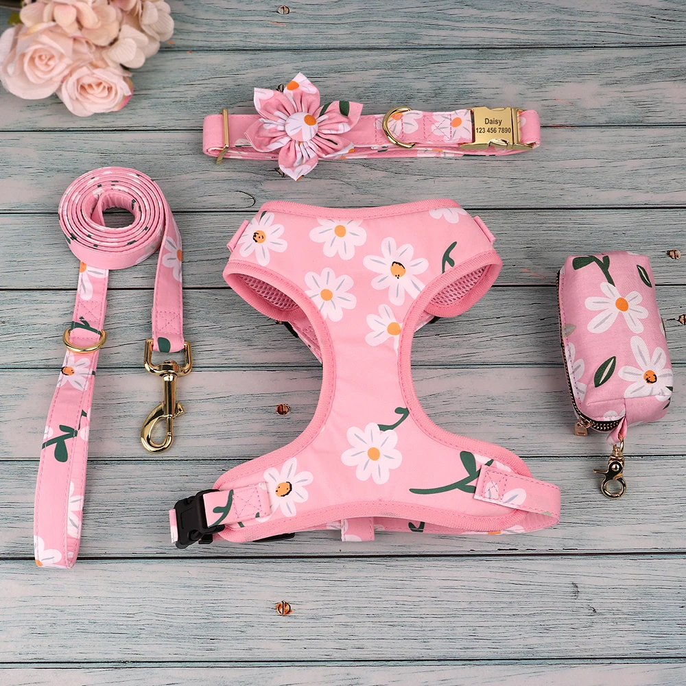Nylon Printed Dog Harness Leash Set Reflective Dogs Harnesses Soft Pet Vest With Walking Leash Rope For Small Medium Large Dogs