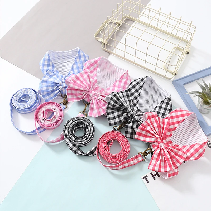 Conjunto de arnés y correa ajustables para perros, arnés de celosía para cachorros, ropa para perros pequeños, chaleco para Chihuahua, ropa para mascotas con anillo en D