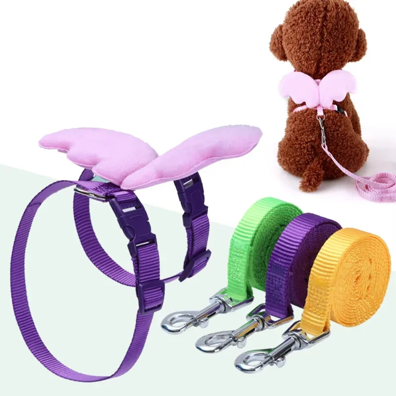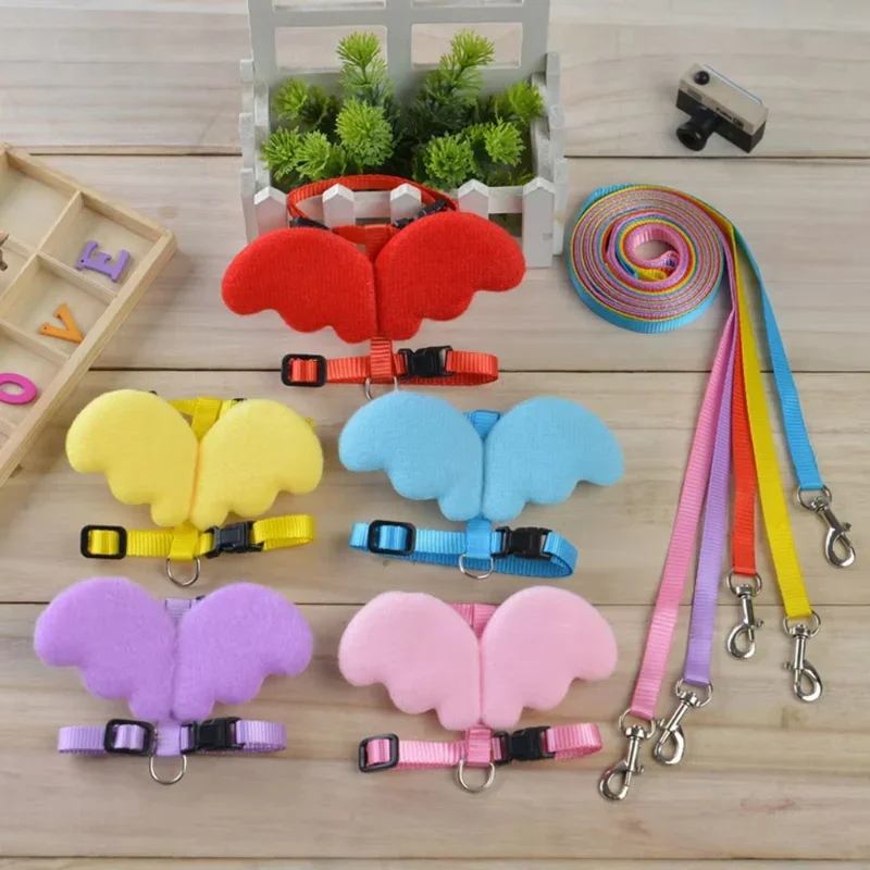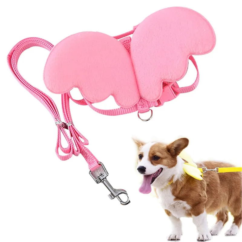 Conjunto de arnés y correa ajustables para perros y gatos pequeños, bonito arnés a prueba de Escape con alas de Ángel para caminar, cachorros, conejos, animales pequeños