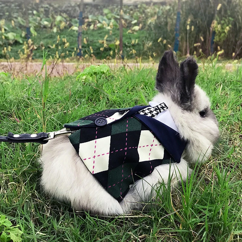 Conjunto de arnés y correa para conejos de estilo pijo para conejos, conejitos, animales pequeños, suministros para caminar al aire libre, chaleco de conejito, ropa