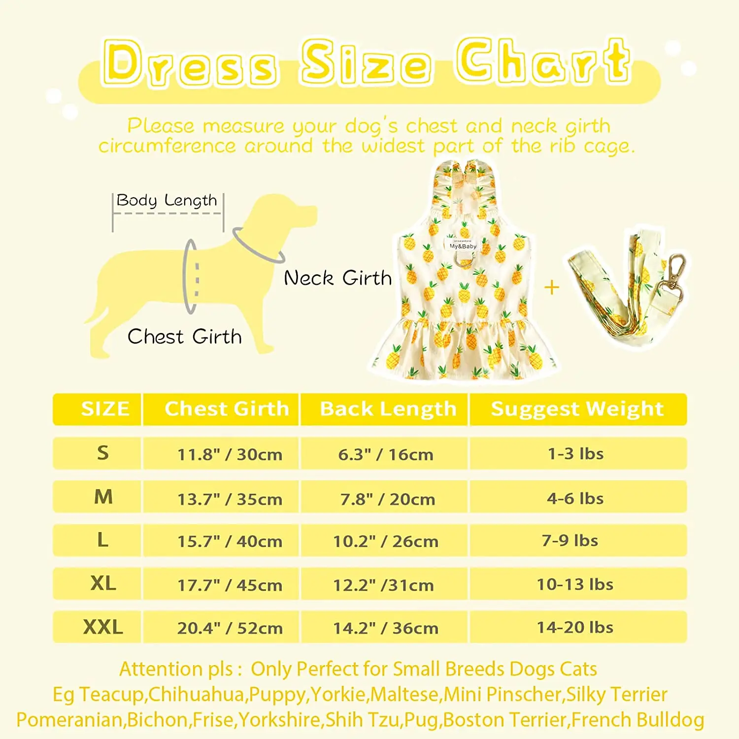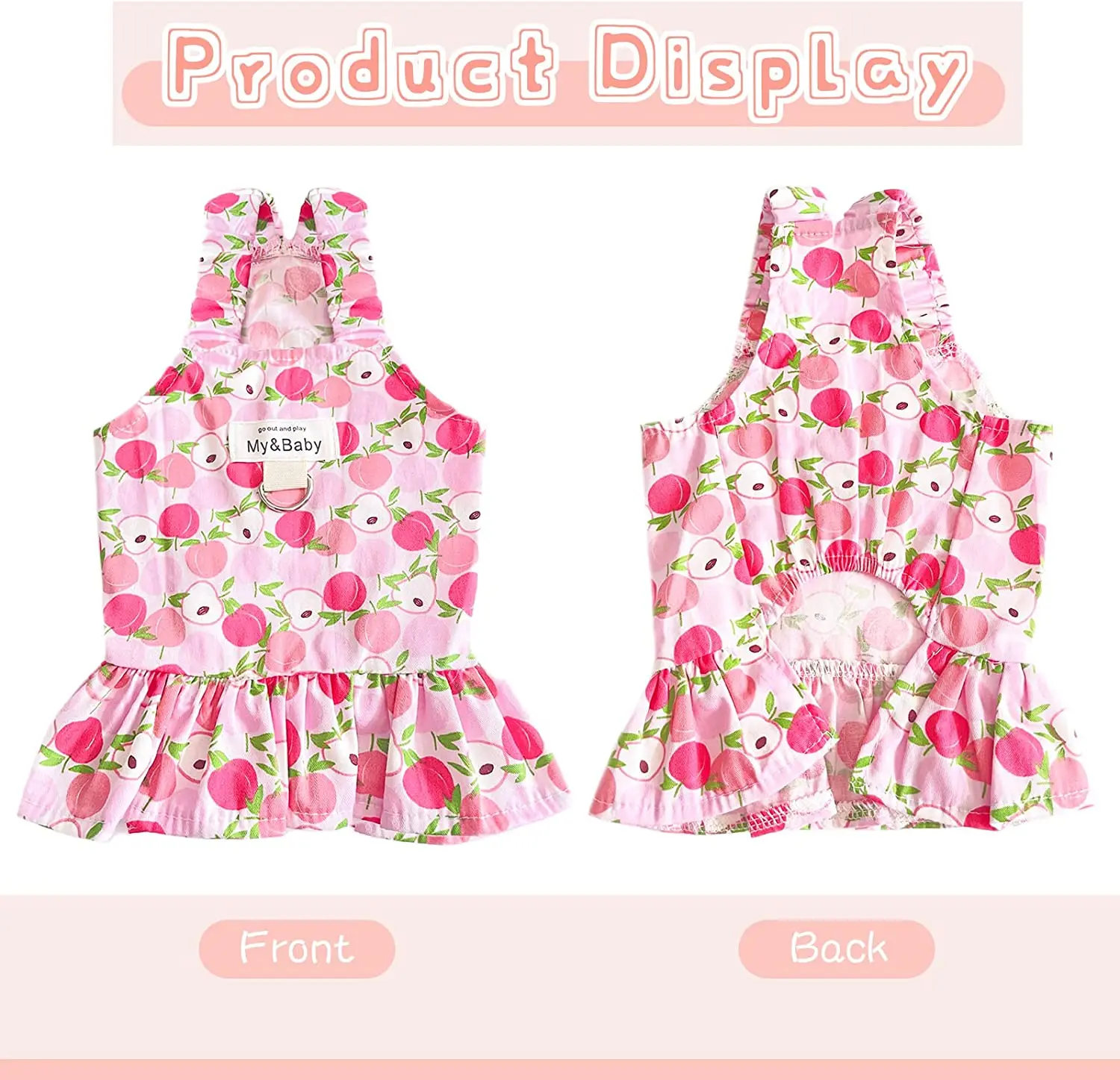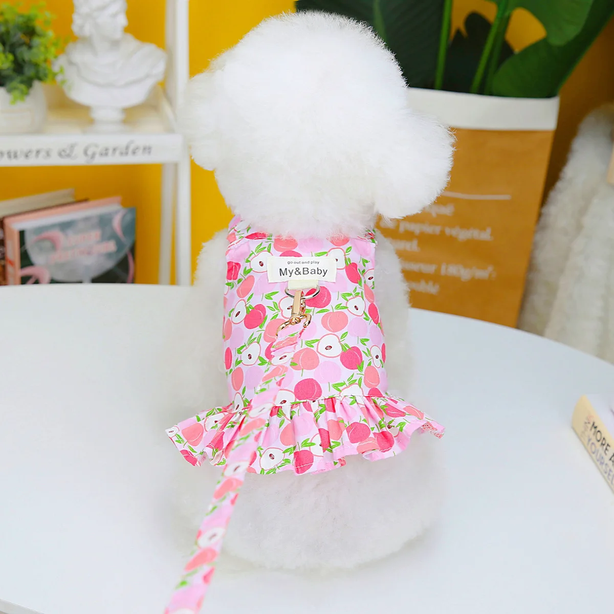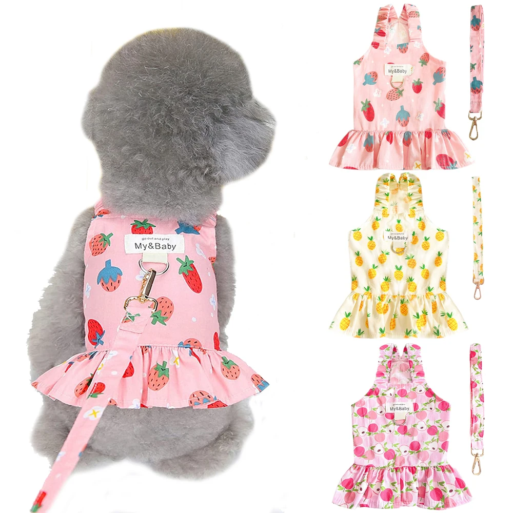 Conjunto de arnés y correa con estampado de frutas para perros pequeños, vestido de verano para perros, faldas para cachorros Yorkie, ropa para mascotas
