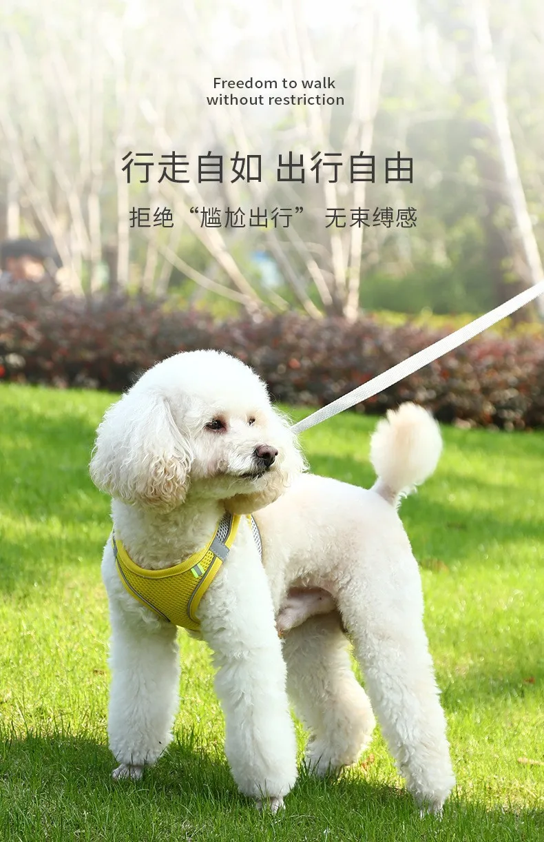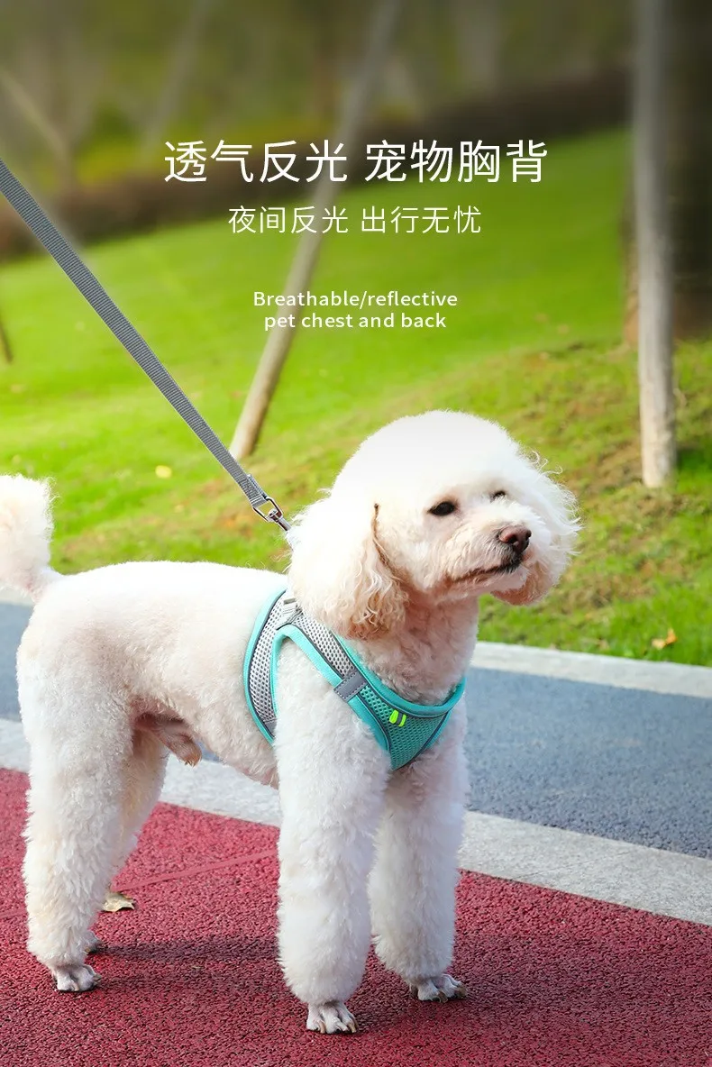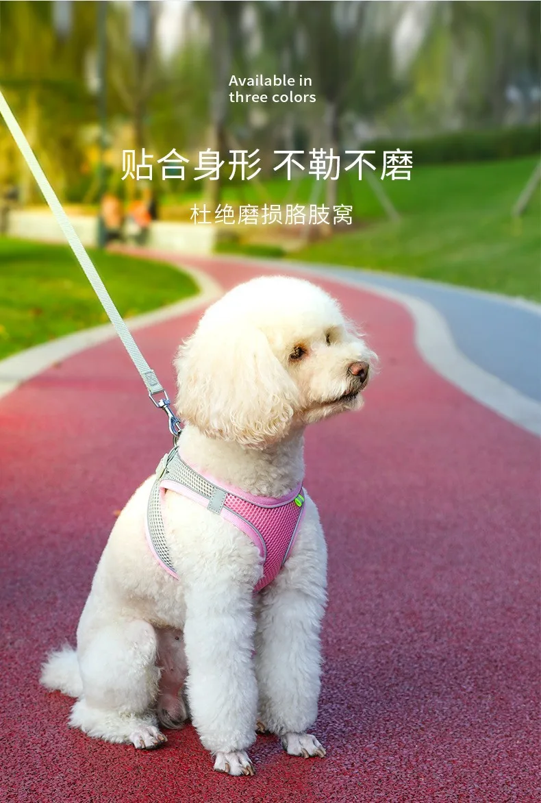 1. Arnés suave y cómodo para perros con correa: textura suave y transpirable sin bordes duros ni hebillas que irriten la piel, reduce los tirones del cuello de su mascota y hace que su mascota camine cómodamente.