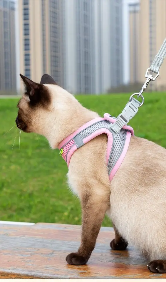 Juego de arnés y correa para gatos a prueba de Escape, arnés de malla ajustable para perros, chaleco para cachorros, correa de plomo para caminar para mascotas, perros pequeños, gatos, gatitos XS