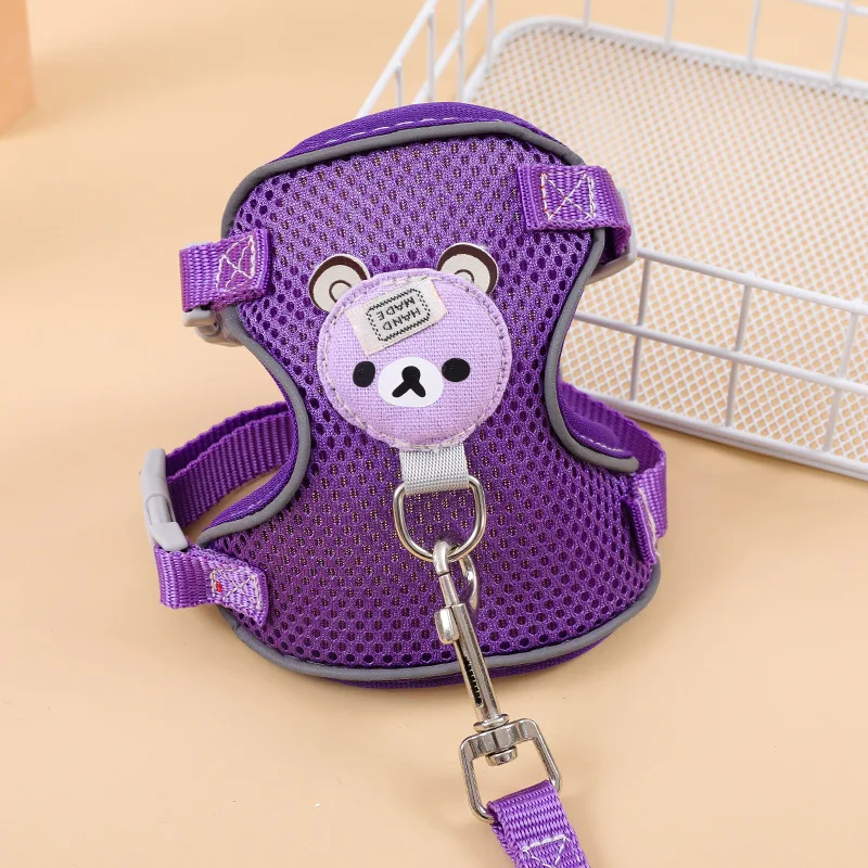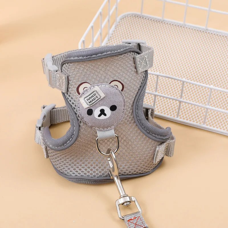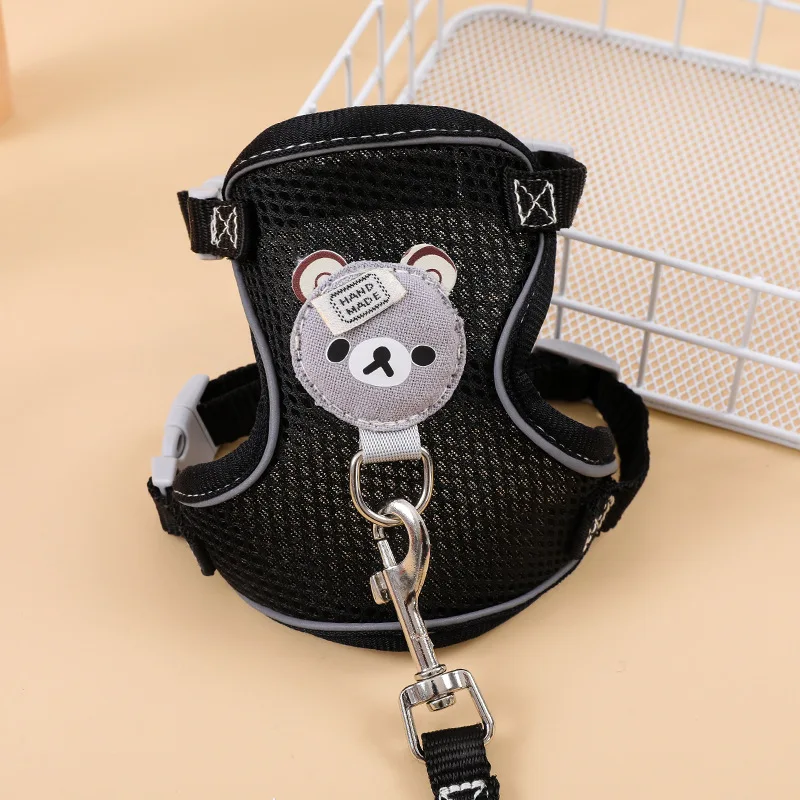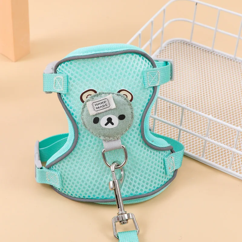 Conjunto de arnés y correa de malla de nailon para mascotas, chaleco reflectante ajustable con patrón de oso de dibujos animados para perros pequeños, cachorros y gatitos