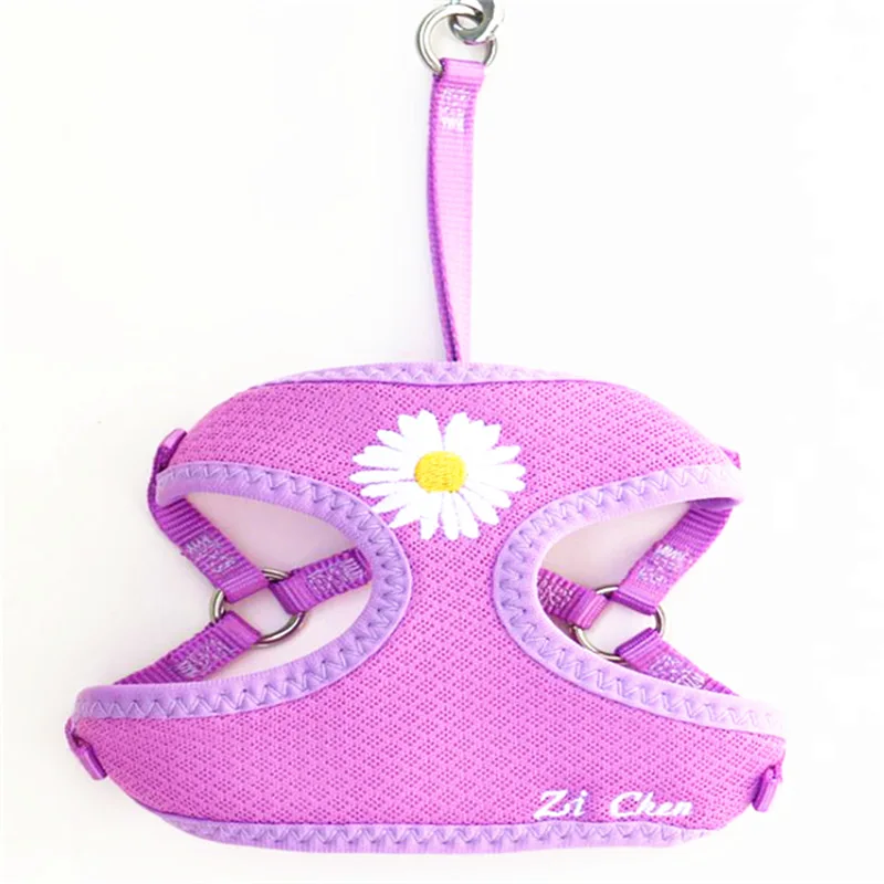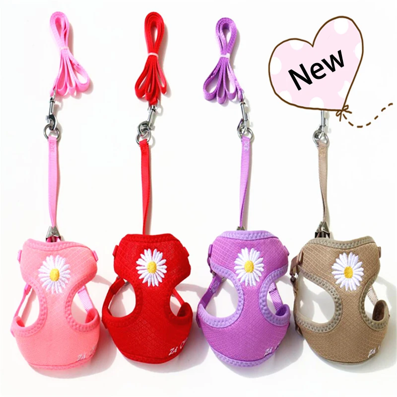 Conjunto de arnés y correa para perro con bordado de margaritas, chaleco de malla de Control para perros pequeños, accesorios de cuerda de plomo para gatos Chihuahua