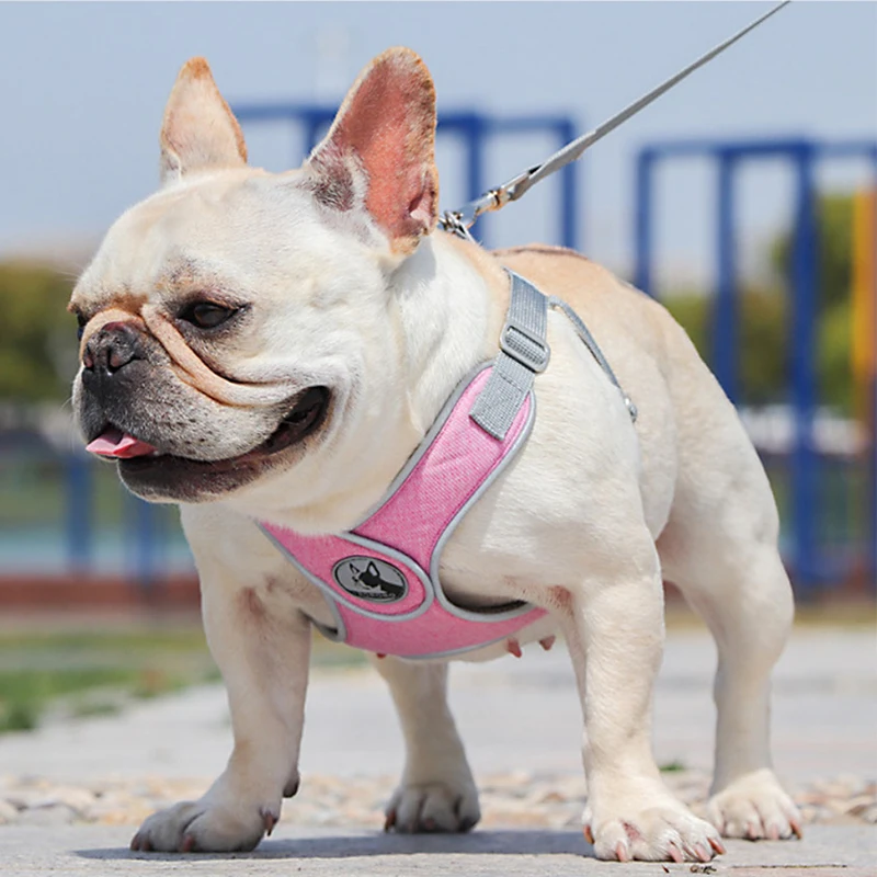 Conjunto de arnés y correa para perro Bulldog francés, chaleco reflectante transpirable para mascotas, accesorios para perros pequeños y medianos