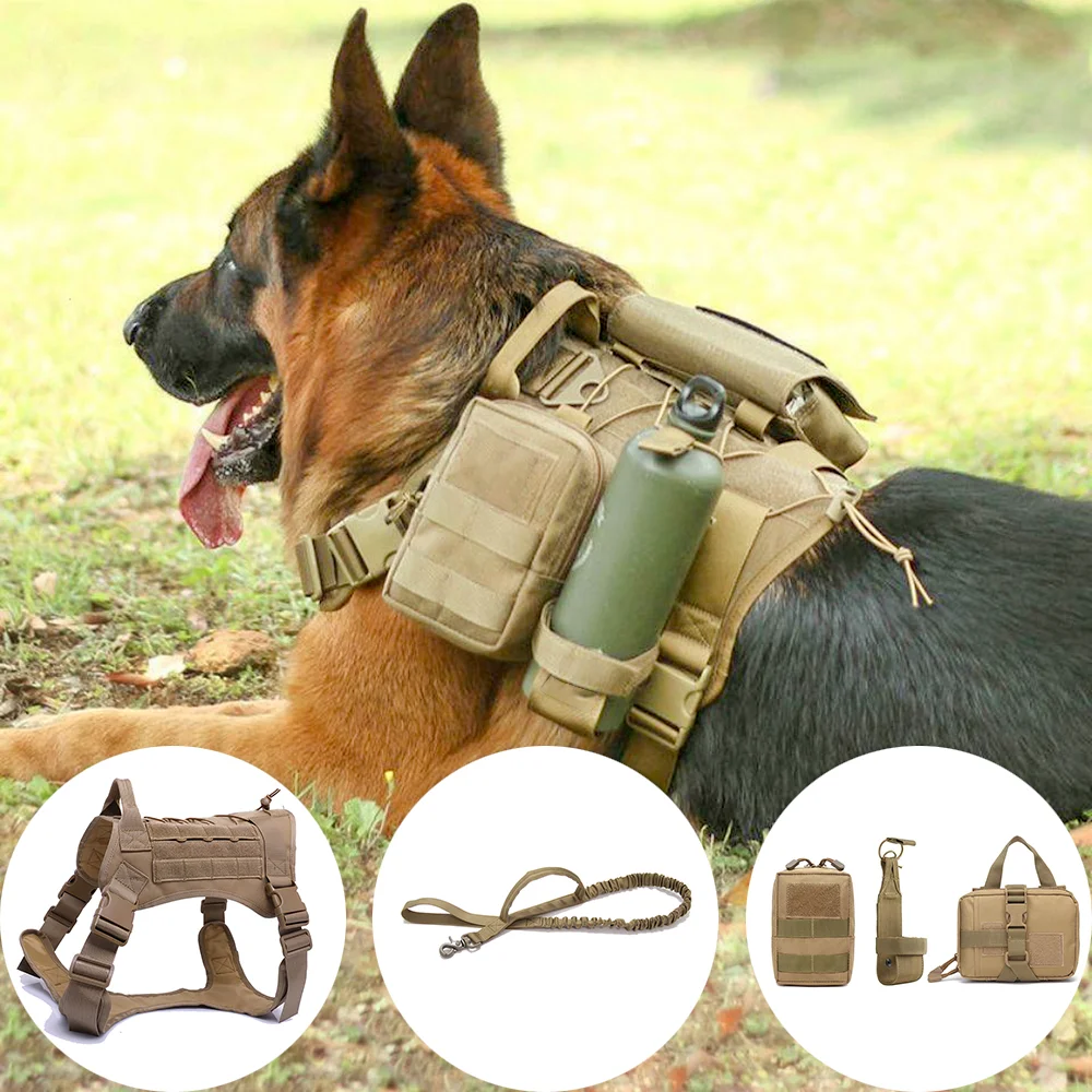 Arnés militar para perros grandes, pastor alemán K9, chaleco de entrenamiento Malinois, conjunto de arnés y correa para perros tácticos