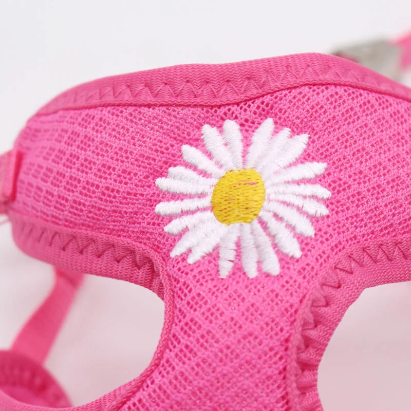 Arnés para mascotas de tamaño pequeño a mediano, muy ajustable, hecho de tela de flujo de aire fresco con una margarita bordada en el pecho que también tiene una correa de nailon de color a juego. Recibo el color, tamaño y cantidad correctos solicitados a este vendedor confiable. Gracias por enviar todo lo que pedí.