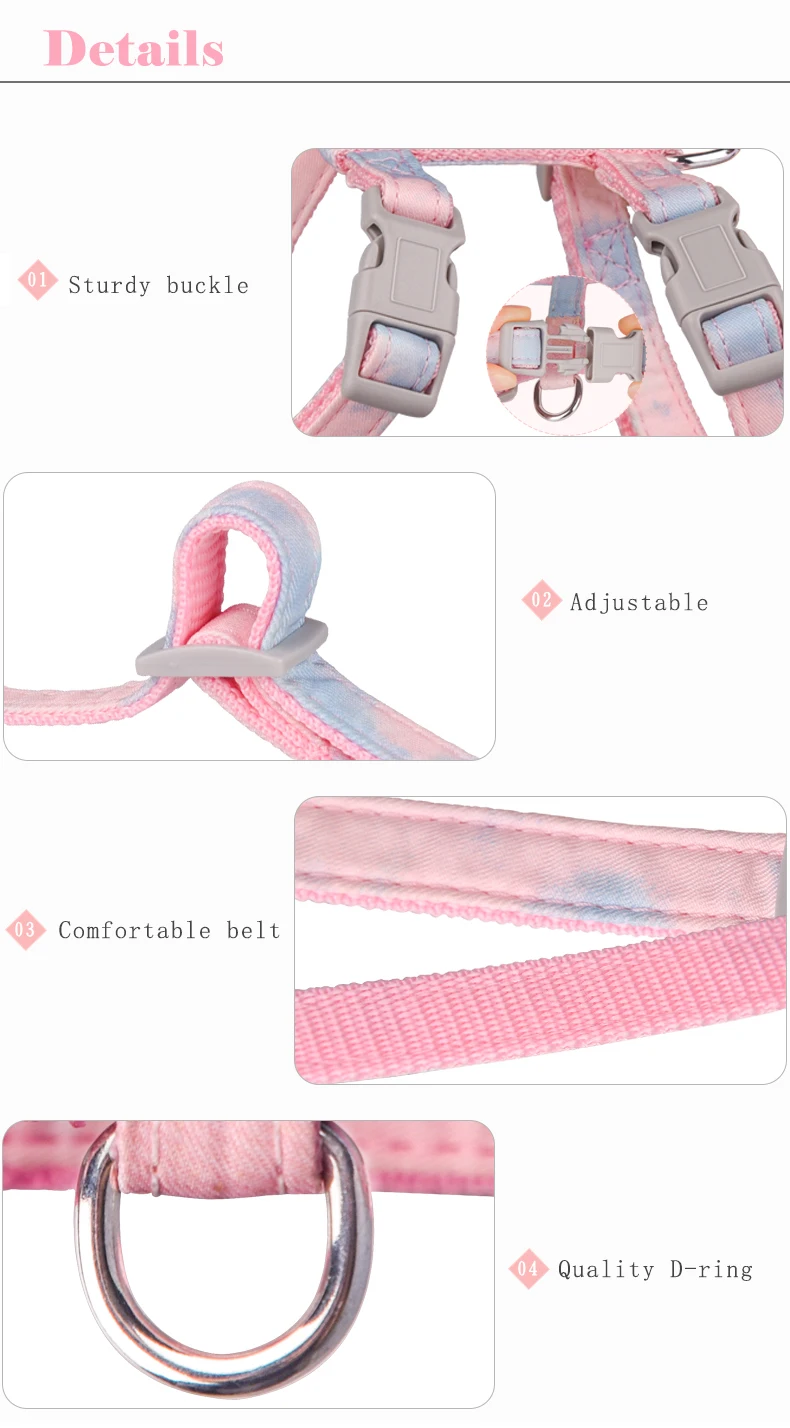 * Característica: lindo, ajustable, hermoso* Apto para: perros pequeños y gatos* Paquete: arnés X 1, Correa X 1S: cuello: 19-26cm; pecho: 25-36cm; peso apto para mascotas: 1,5-3,5 kgM: cuello: 26-38cm; pecho: 34-54cm; peso apto para mascotas: 3,0-7,5 kg