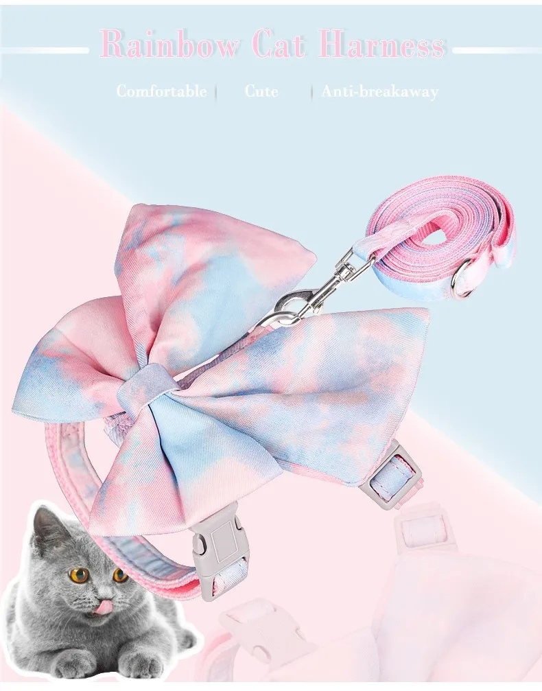 Juego de arnés y correa para perros y gatos, arnés ajustable antiescape para cachorros y gatitos, bonitos arneses con lazo para mascotas, accesorios para gatos Chihuahua