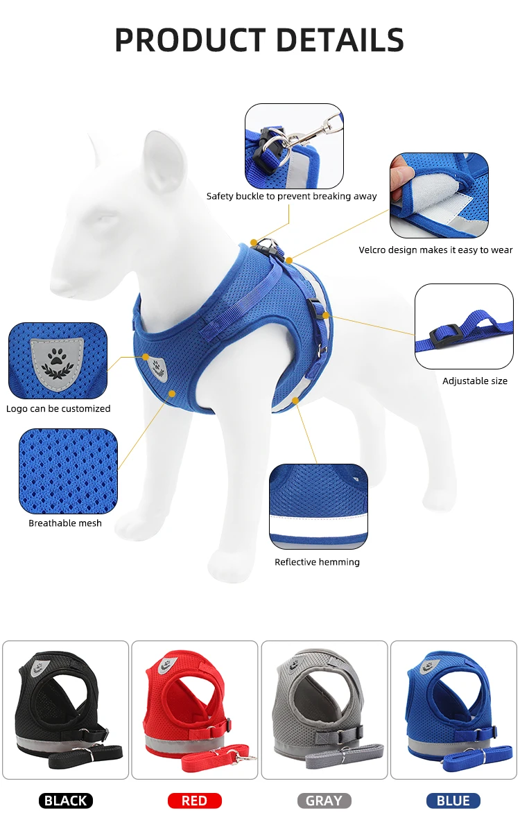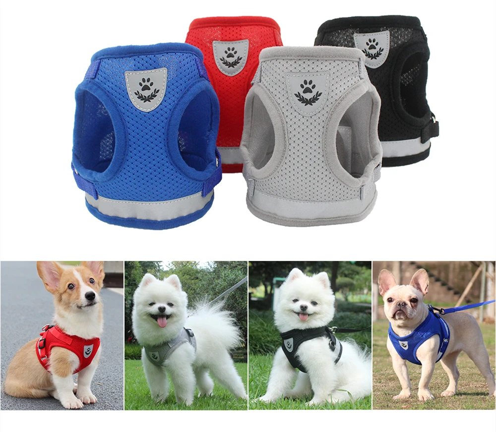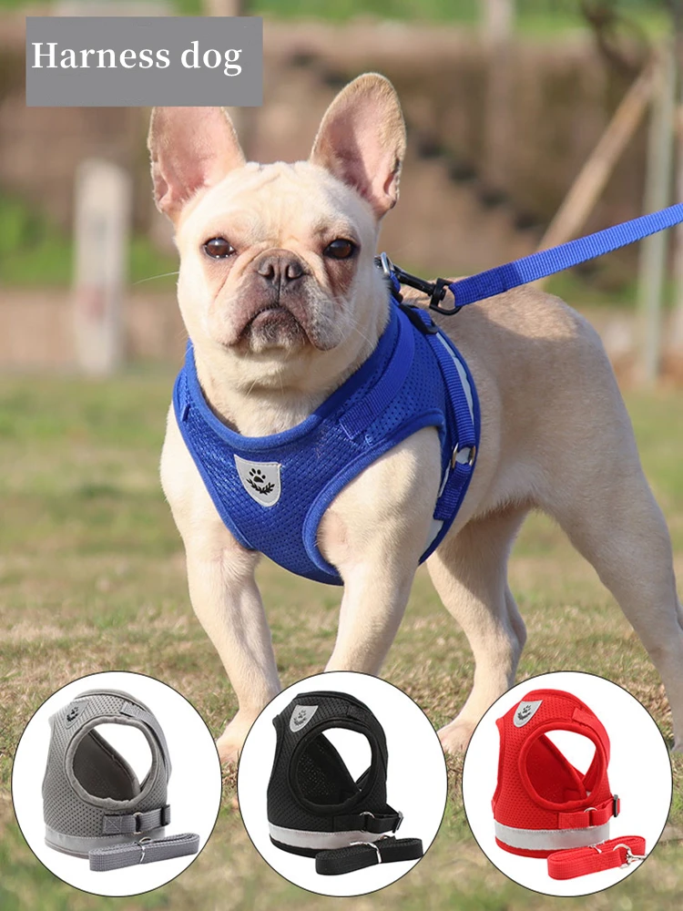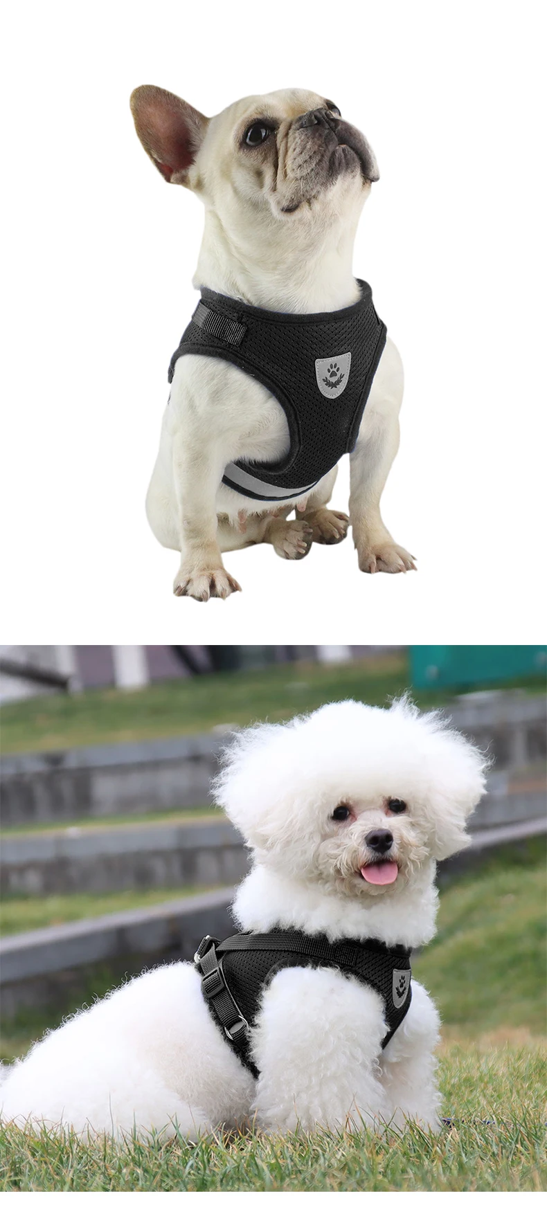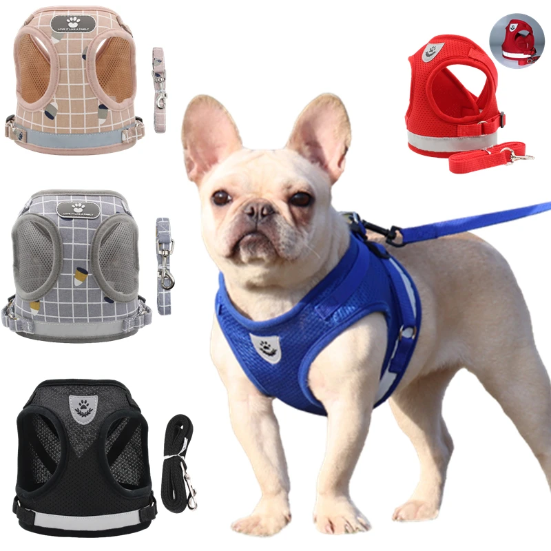 Juego de arnés y correa para perros y gatos, arnés de pecho para perros pequeños y medianos para Chihuahua, Bulldog francés, Pug, cachorro, Harnes, chaleco, accesorios
