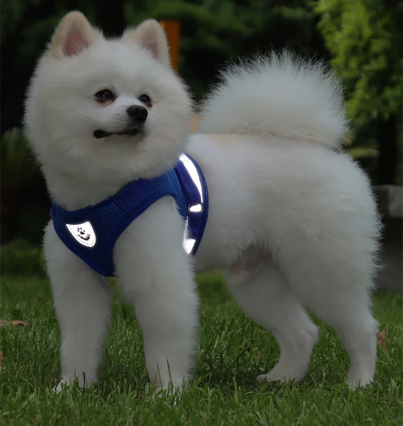 2. Arnés reflectante para perros y gatos-Sellado con tubería reflectante, genera un excelente efecto reflectante, mejora la visibilidad en la oscuridad de su perro, mantiene a su perro seguro.