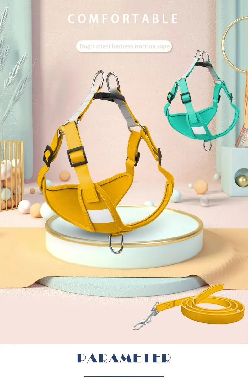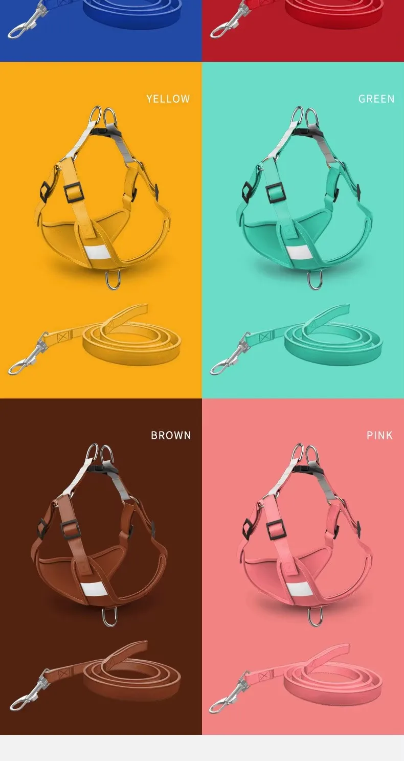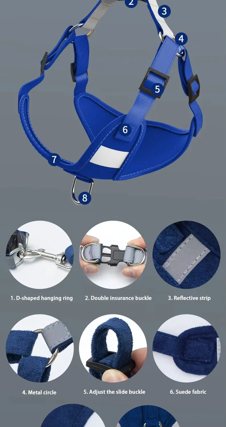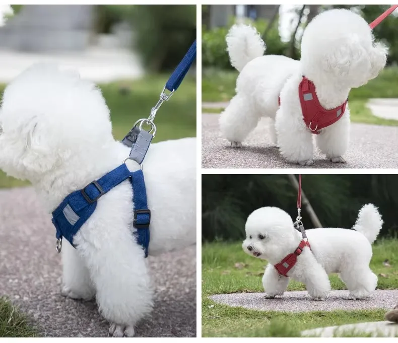 Conjunto de arnés y correa para perros estilo chaleco reflectante de gamuza, arnés ajustable para cachorros a prueba de escape para perros pequeños, aliento acolchado suave