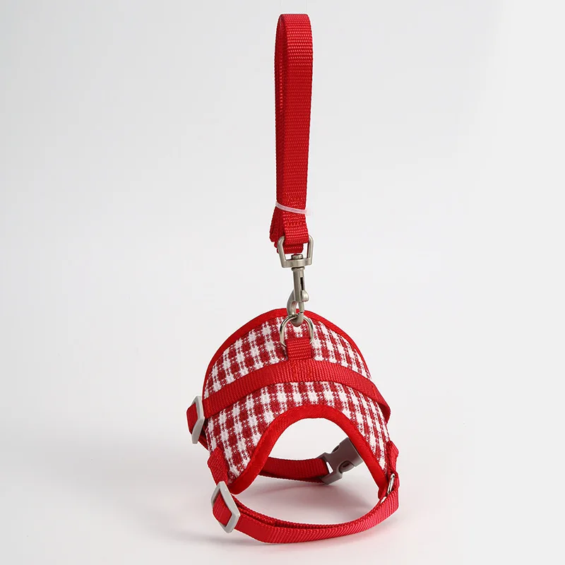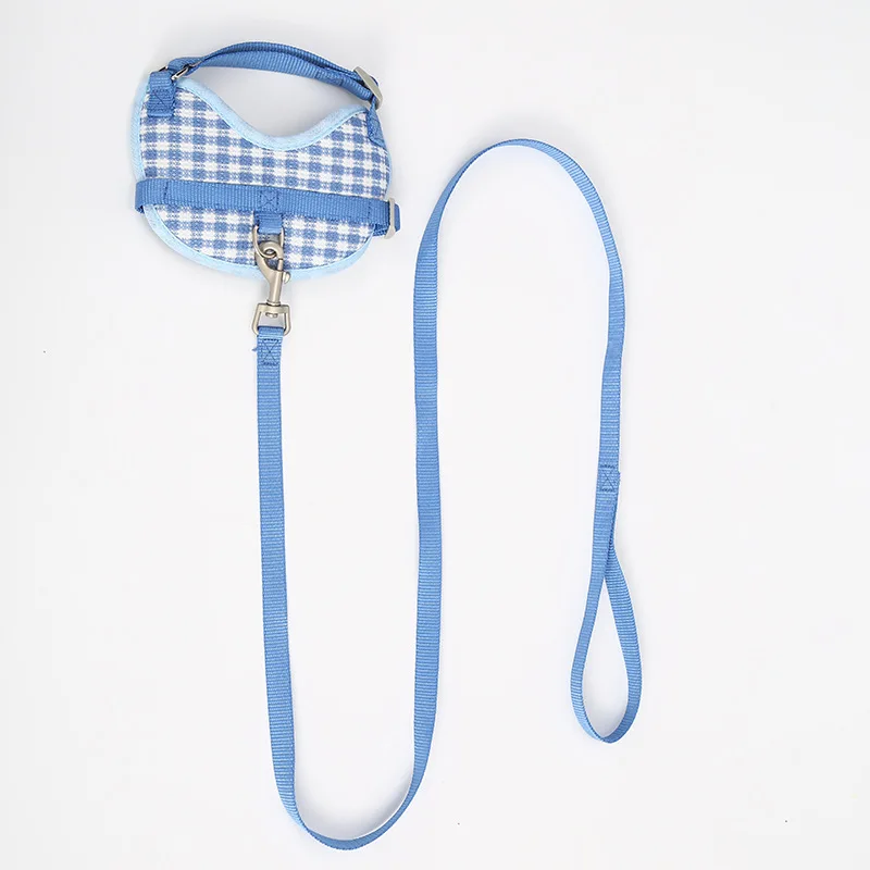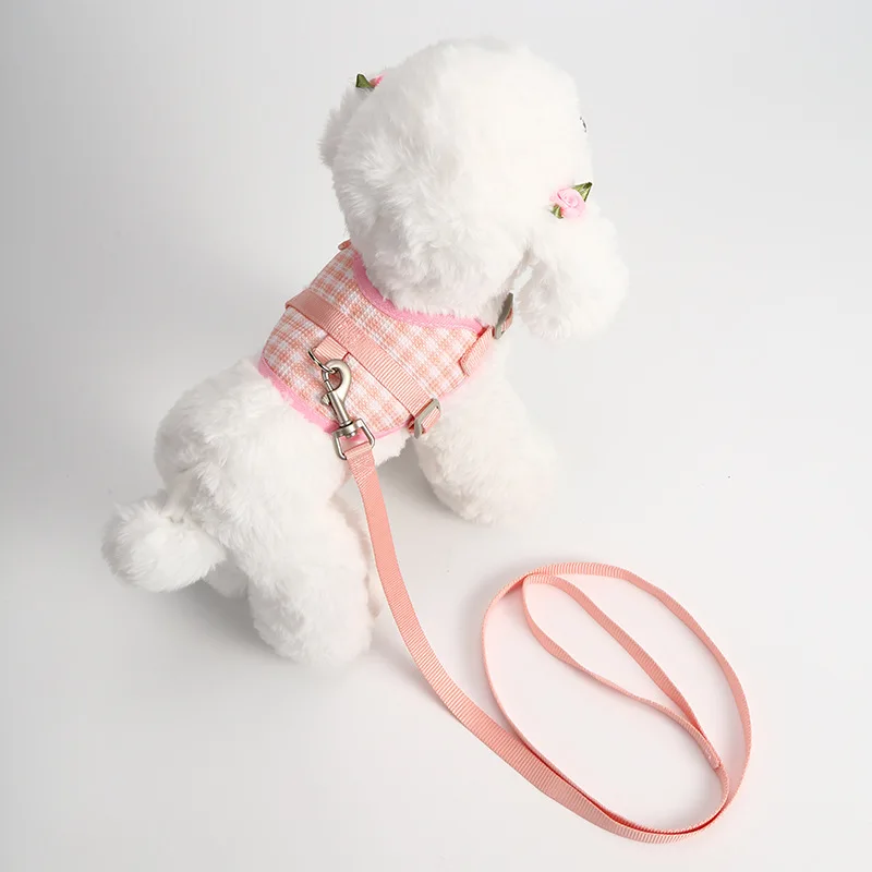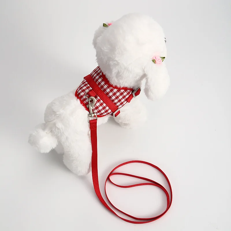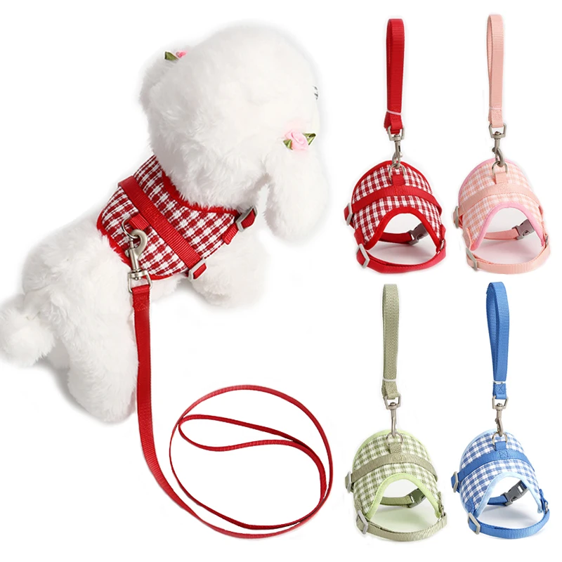 Conjunto de arnés y correa para perros pequeños, chaleco a cuadros con forro de malla de nailon ajustable sin tirones, accesorio para mascotas